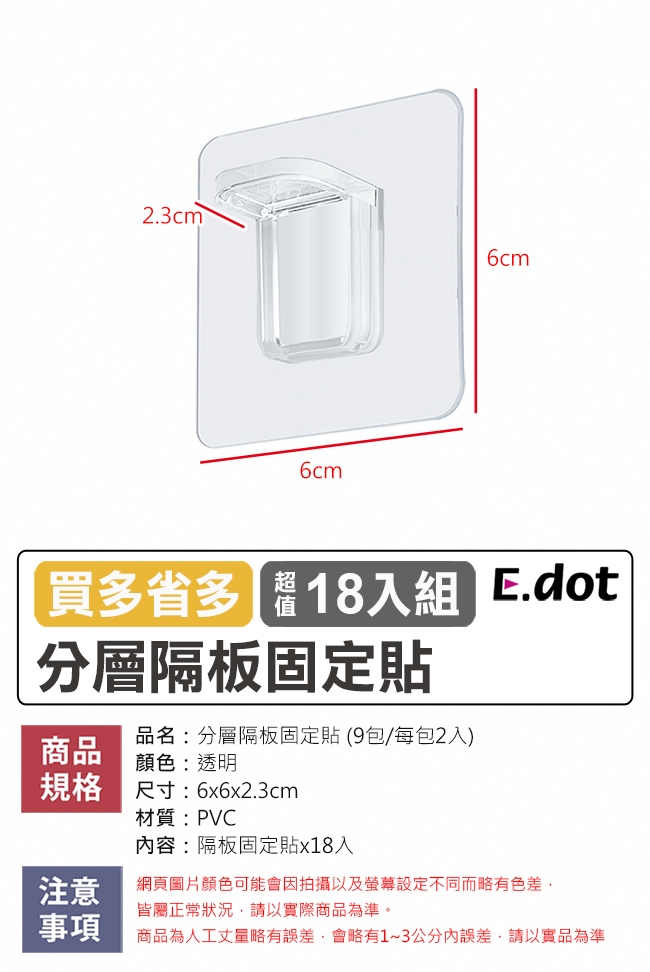 ◆ 品名:分層隔板固定貼(9包/每包2入)