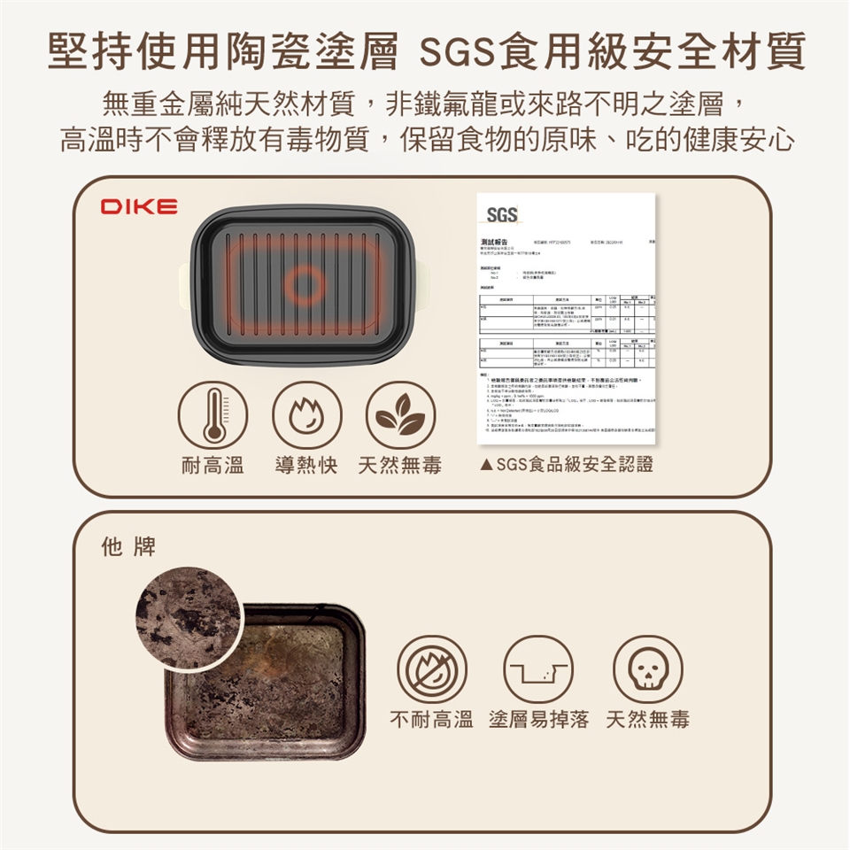 烤盤/深鍋皆使用陶瓷塗層,便利清潔、少煙少油膩
