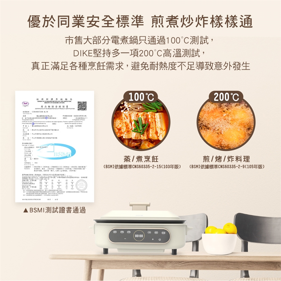 安全雙認證通過、智能溫控防護,快快煮、安心吃