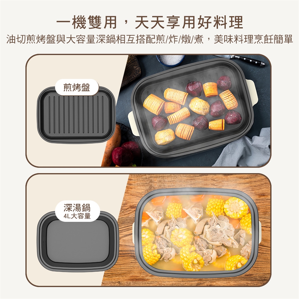 內附烤盤/深鍋,便利清潔/更換,滿足各式料理需求