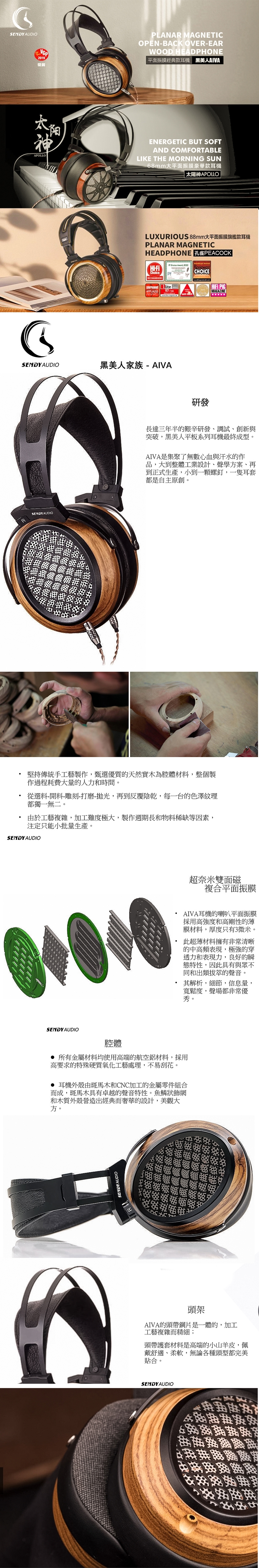 SENDY AUDIO Aiva 黑美人 HIFI級平面振膜全罩式耳機/耳罩式專業級耳機.台灣公司貨