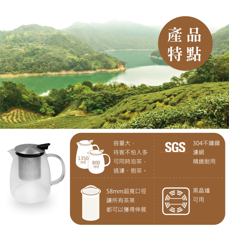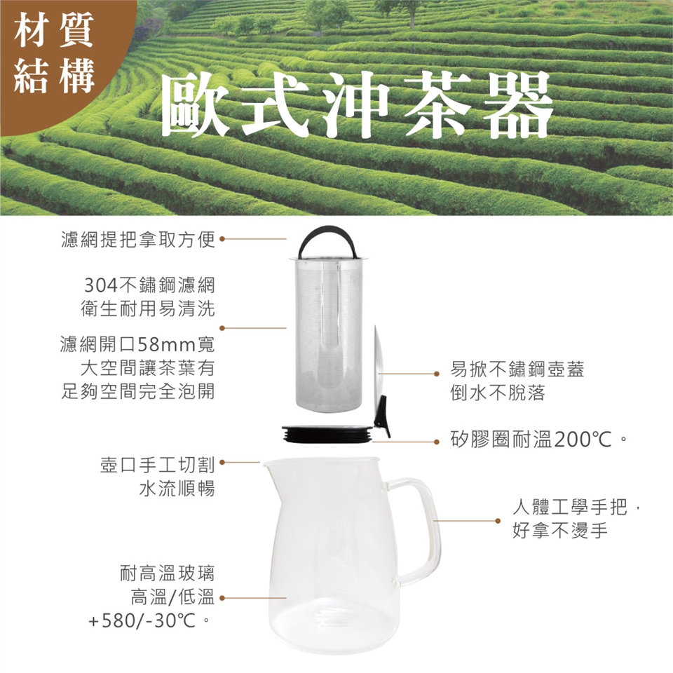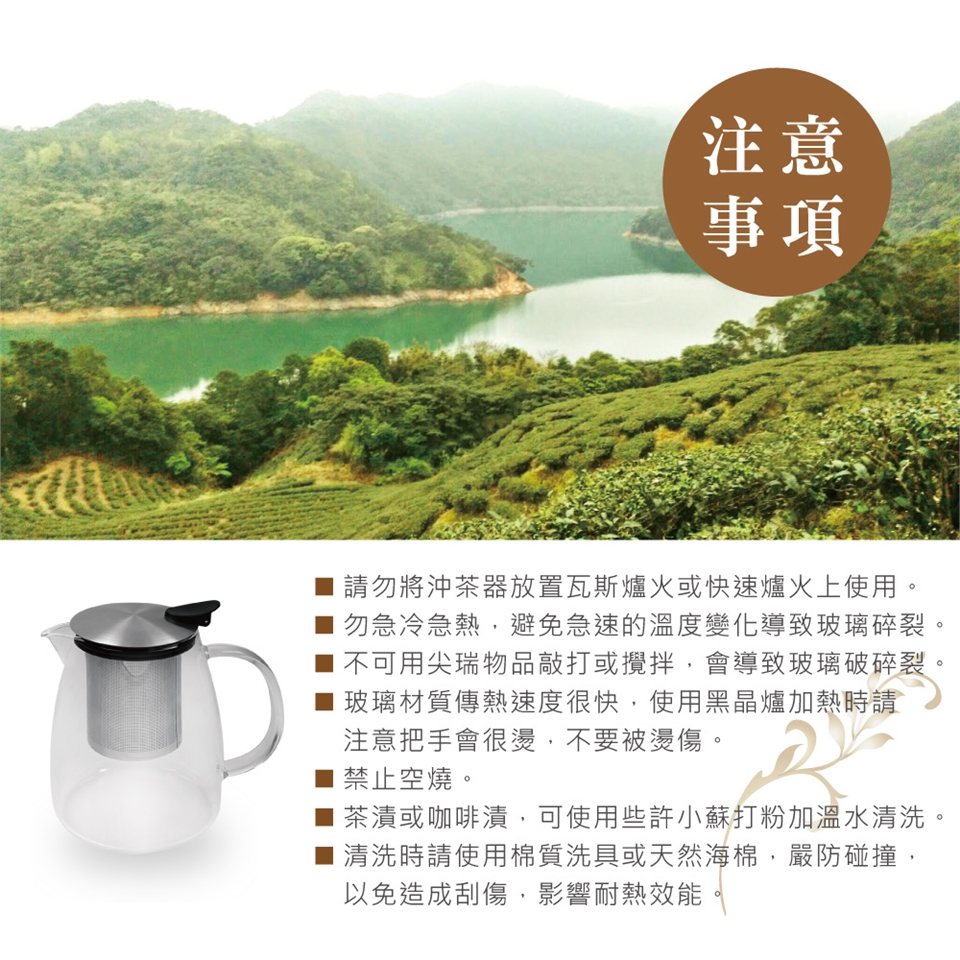 ◆ 壺身採耐高溫玻璃,適合沖泡各式茶飲