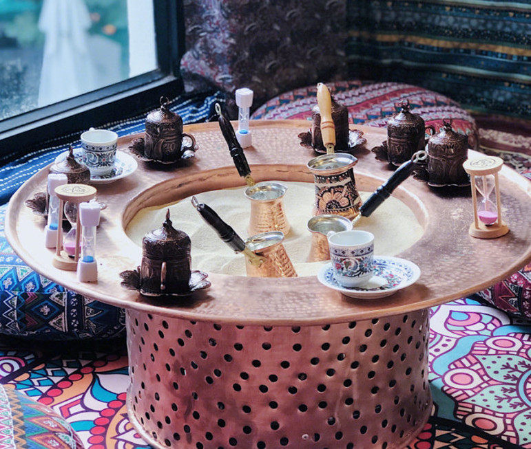 用來煮咖啡的小銅壺很有特色和濃厚的文化氣息,
