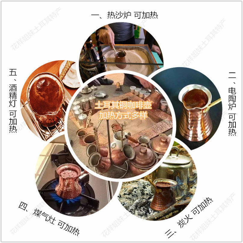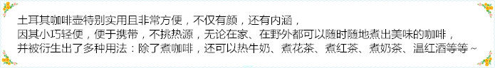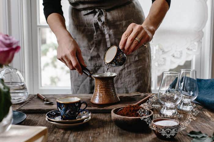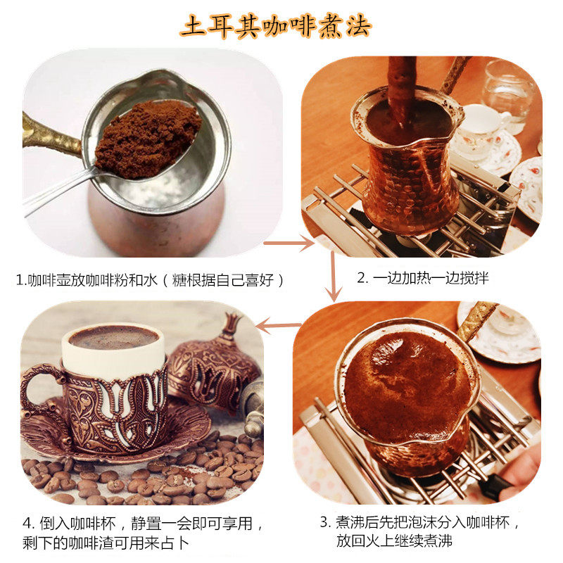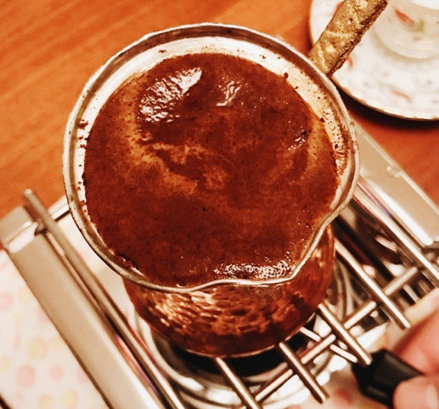 土耳其咖啡粉極細,咖啡不用過濾,小火加熱,咖啡很快就沸騰起泡,綿密豐富的金黃泡沫非常有滿足感,氤氳的咖啡濃香刺激你的味蕾,給你五官的全方位享受~~