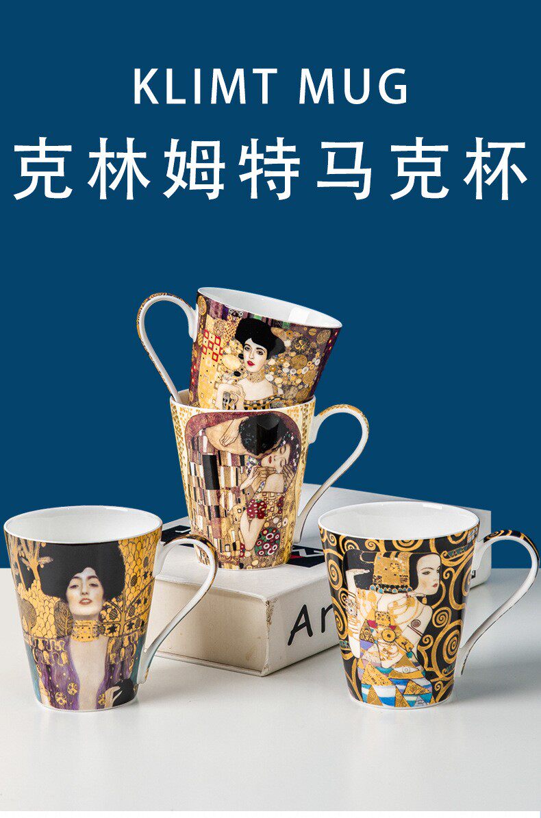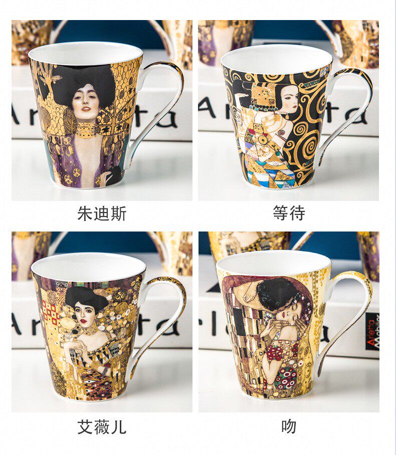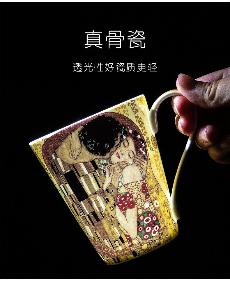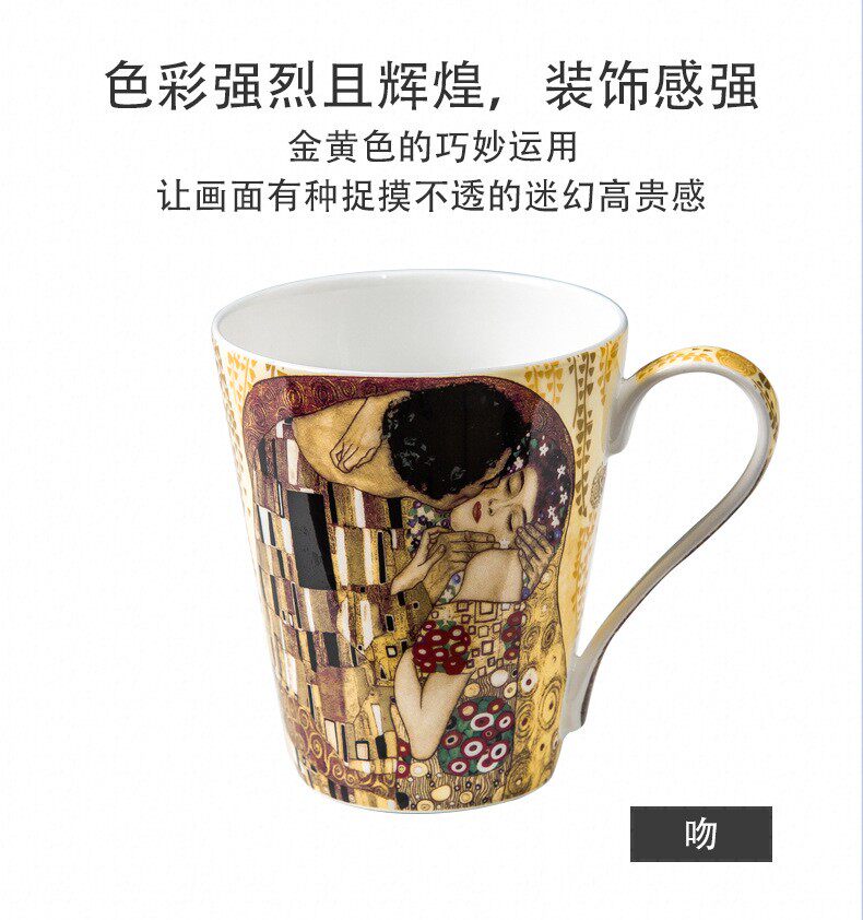 克林姆特-吻骨瓷馬克杯陶瓷杯子創意油畫咖啡杯情侶對杯
