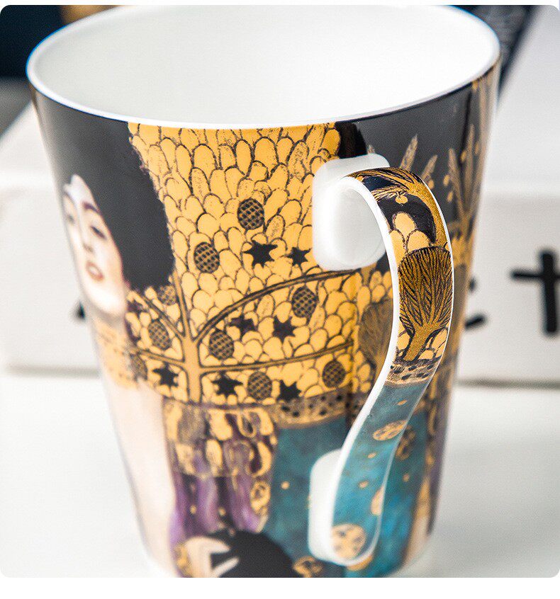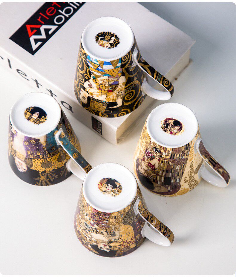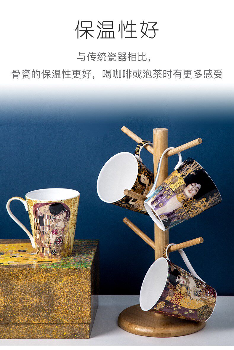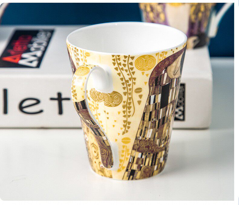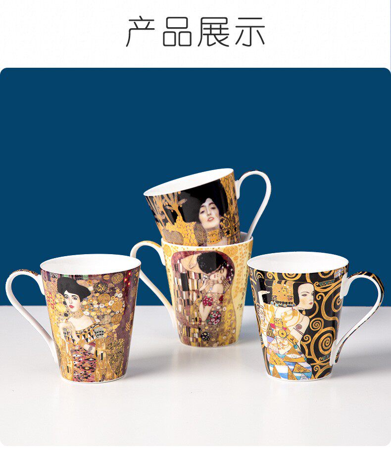 克林姆特-吻骨瓷馬克杯陶瓷杯子創意油畫咖啡杯情侶對杯