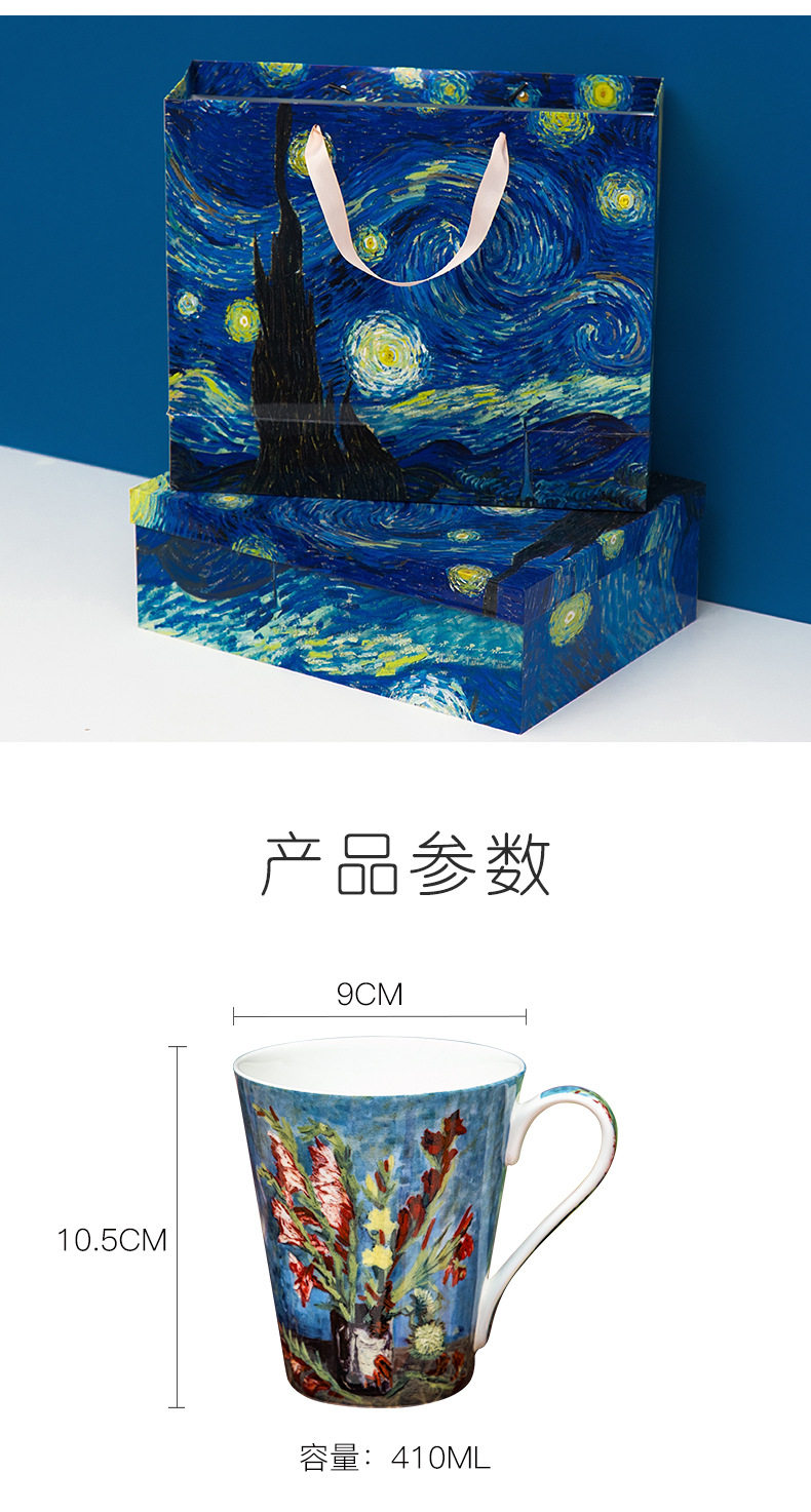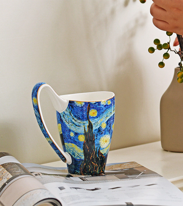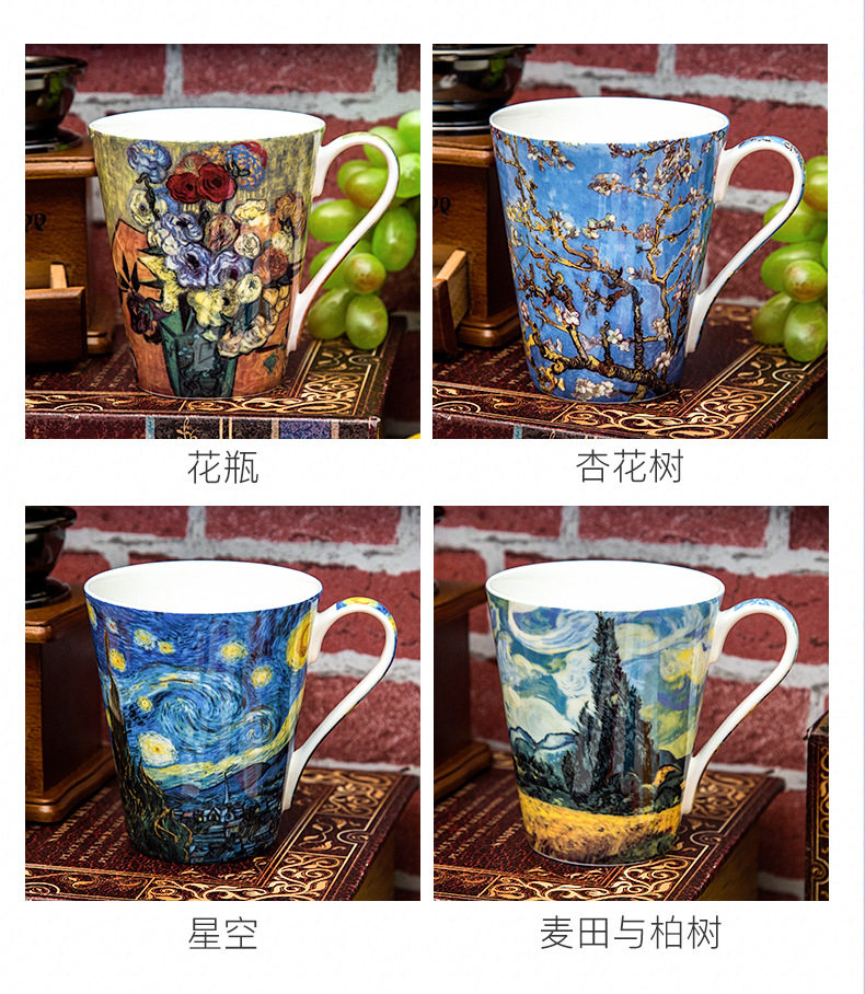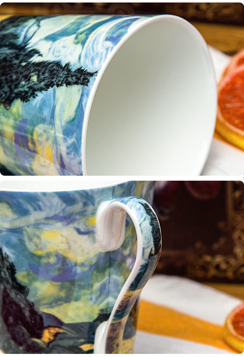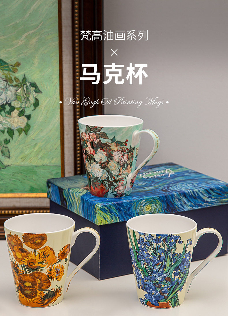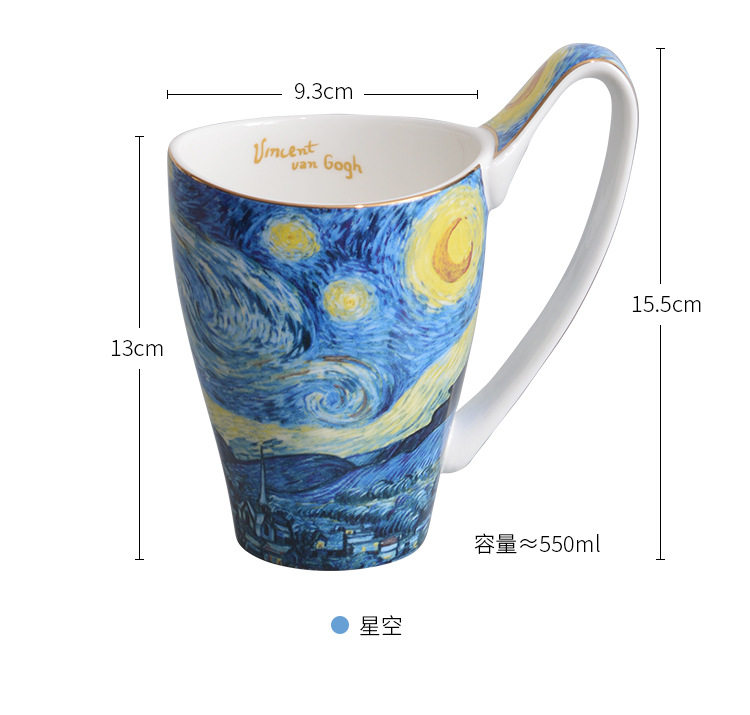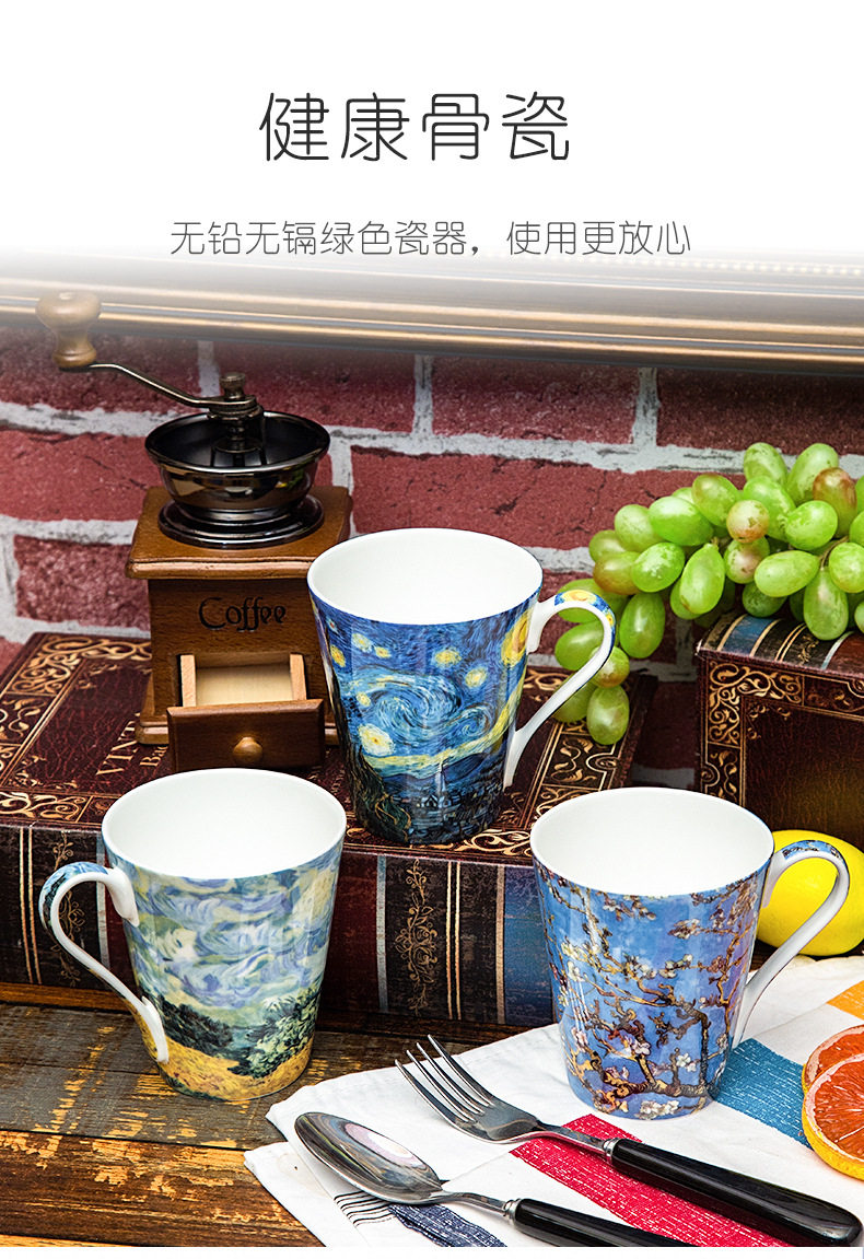 梵高油畫骨瓷大容量馬克杯創意個性潮流文藝杯子家用陶瓷杯禮盒裝