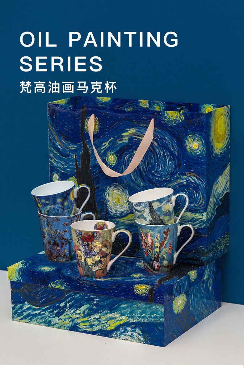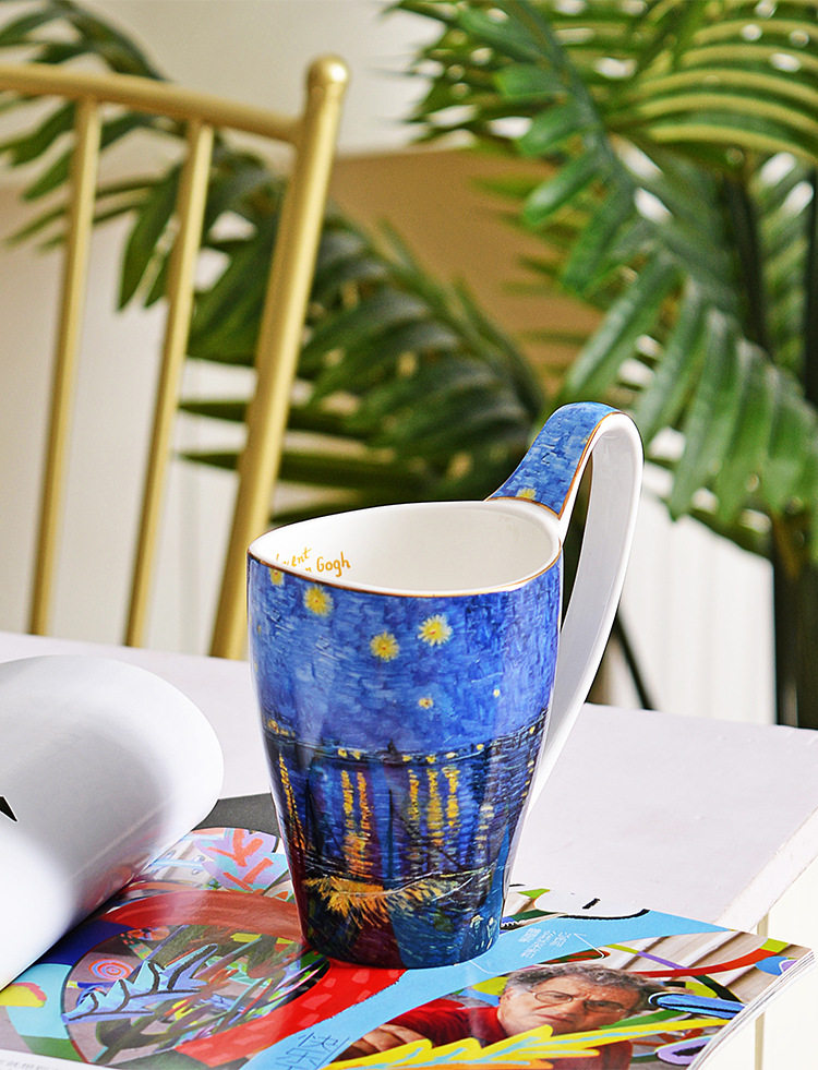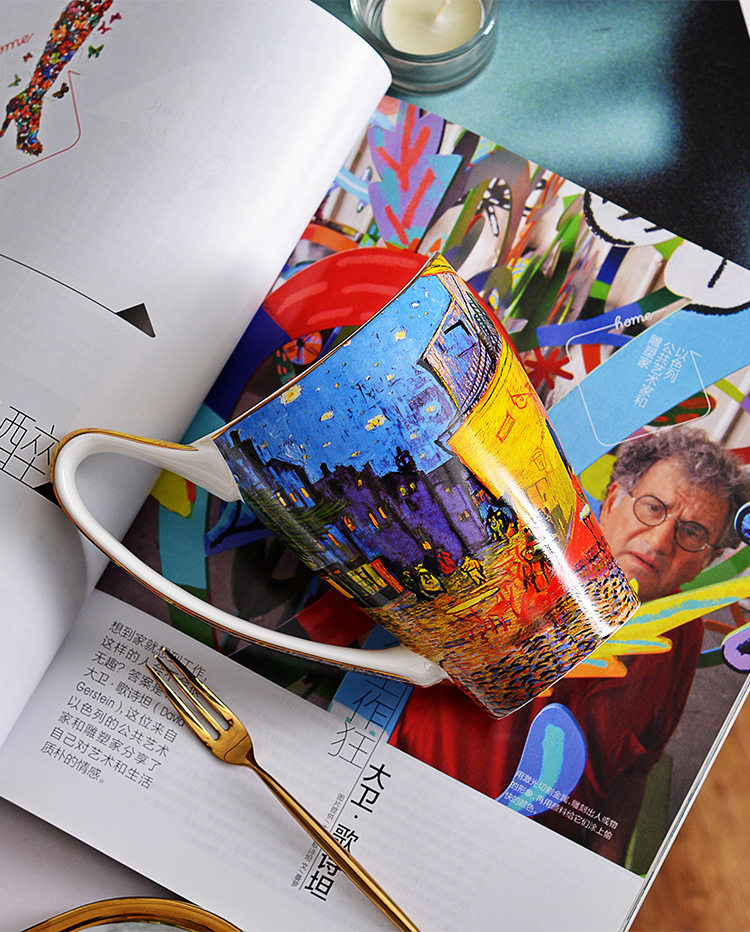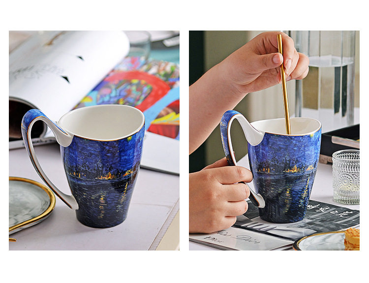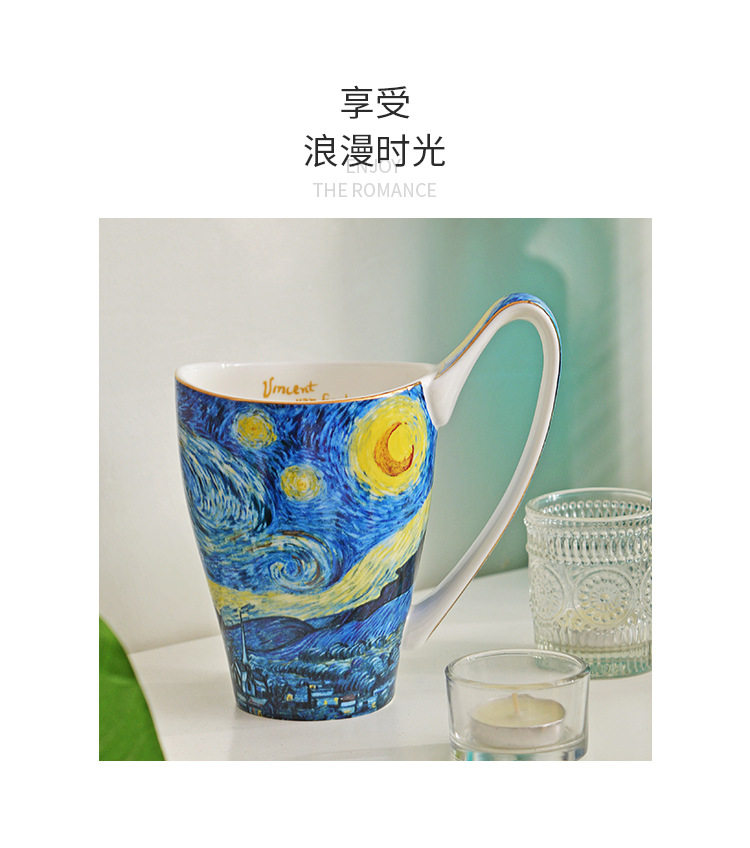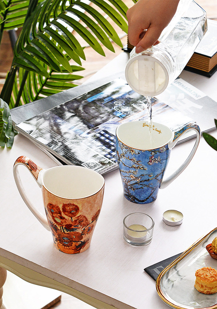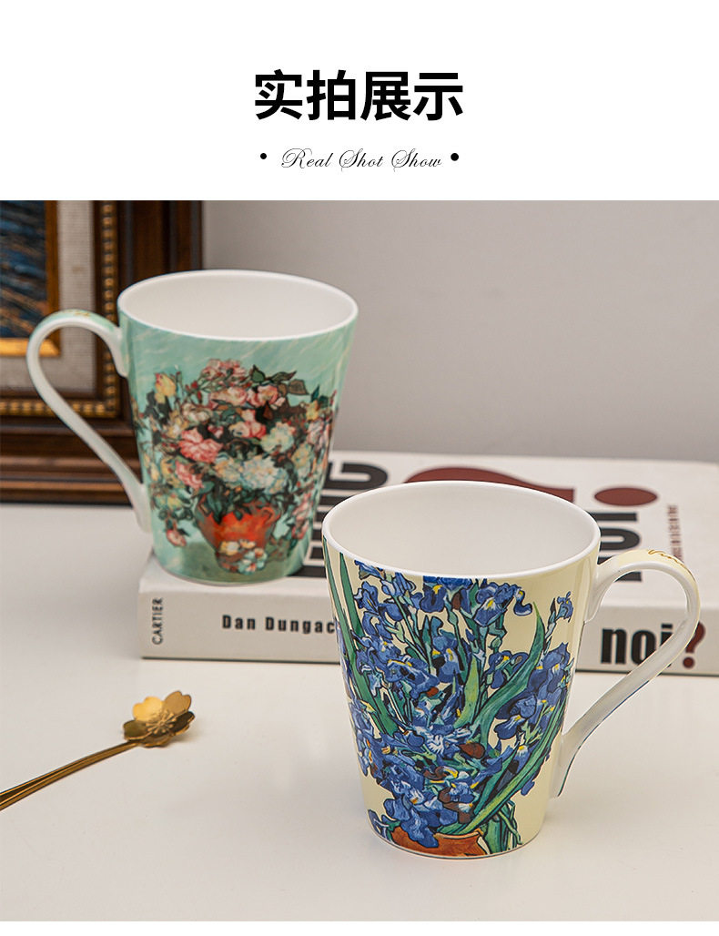 梵高油畫骨瓷大容量馬克杯創意個性潮流文藝杯子家用陶瓷杯禮盒裝