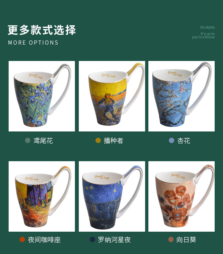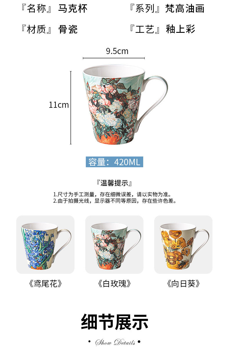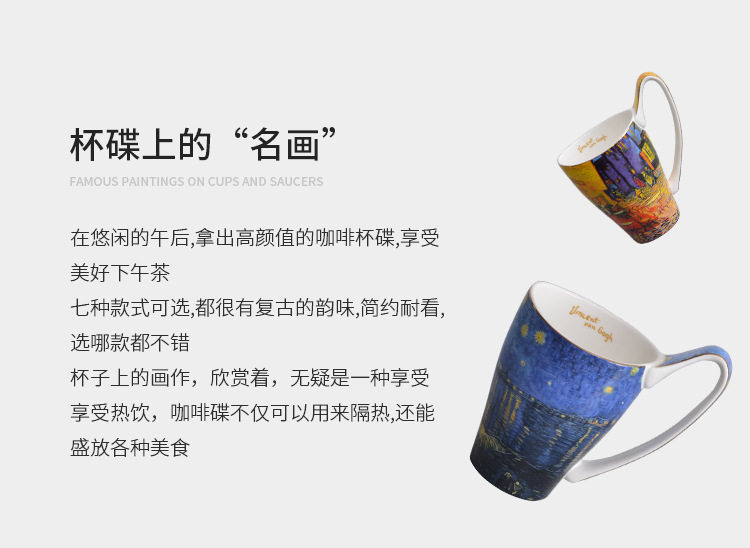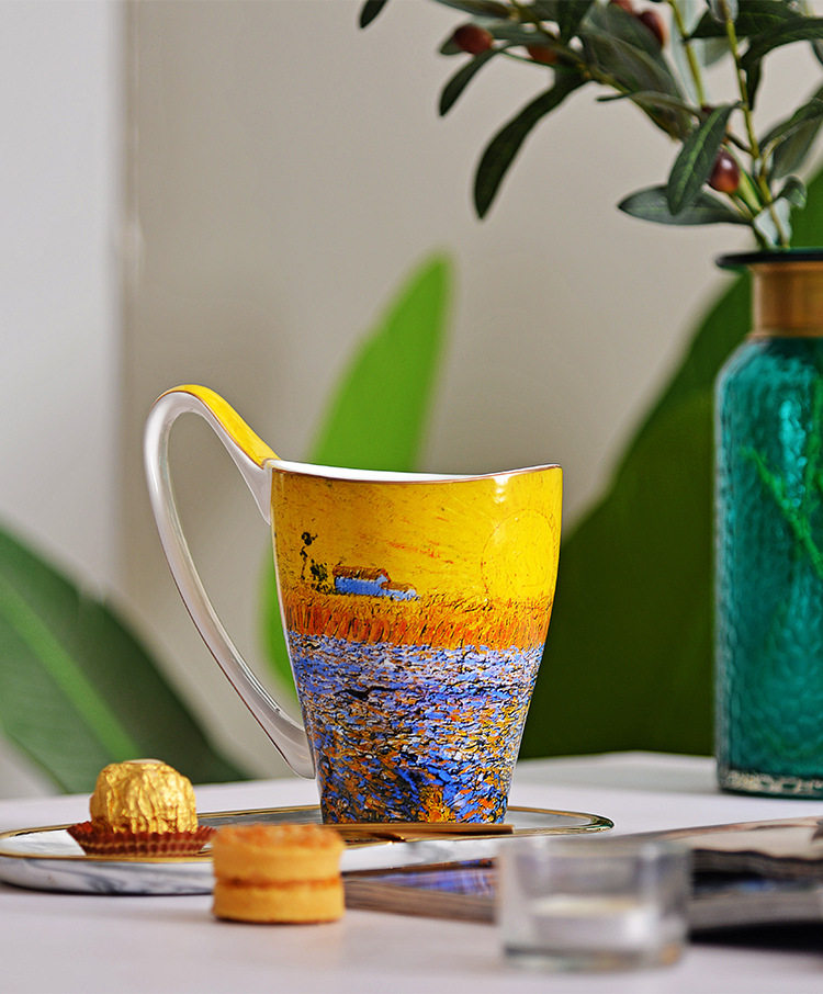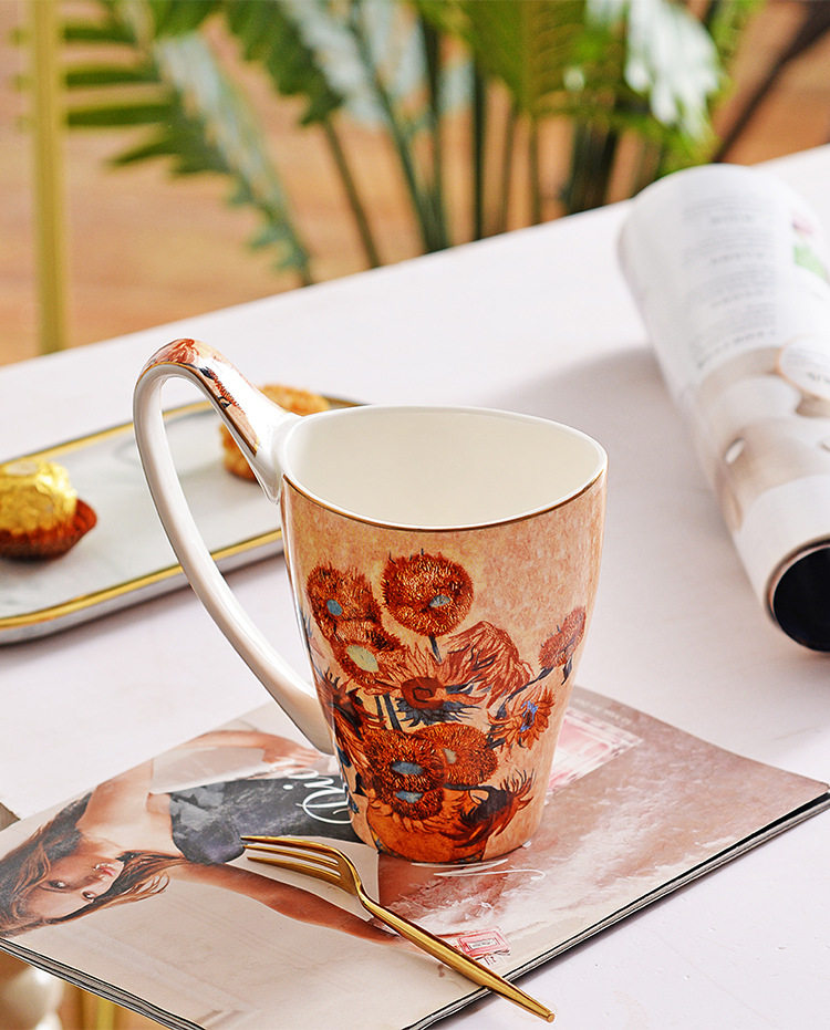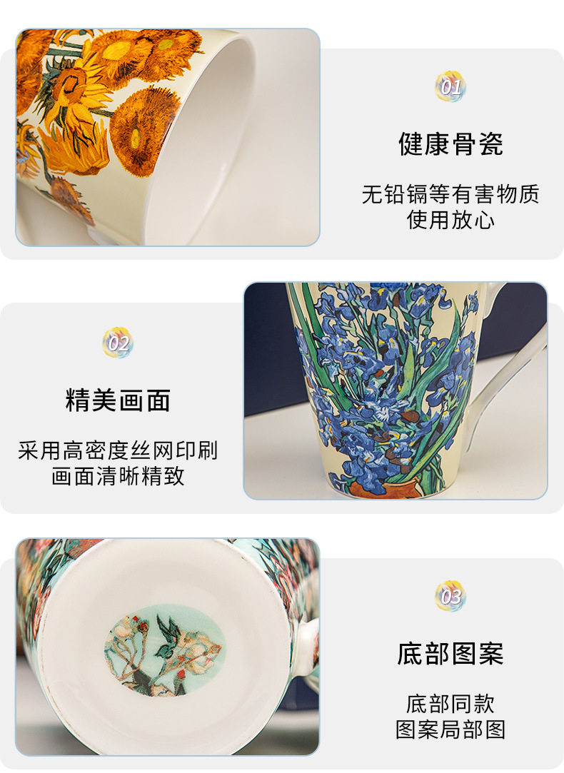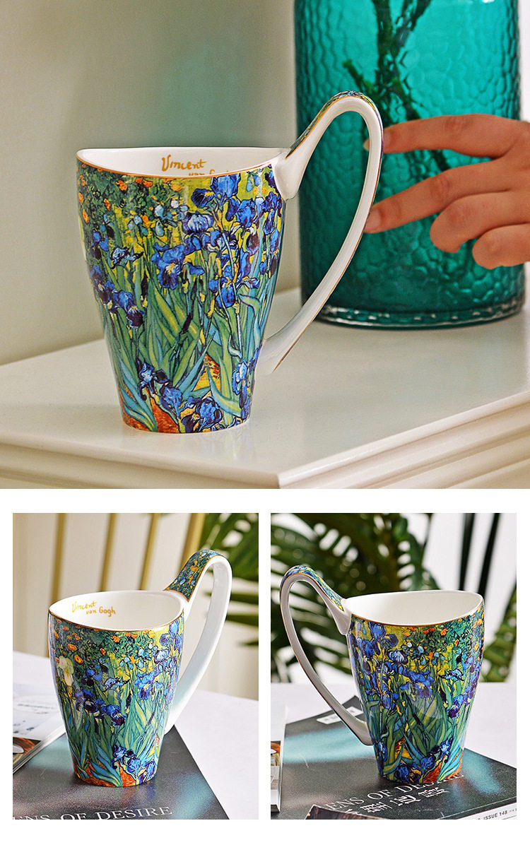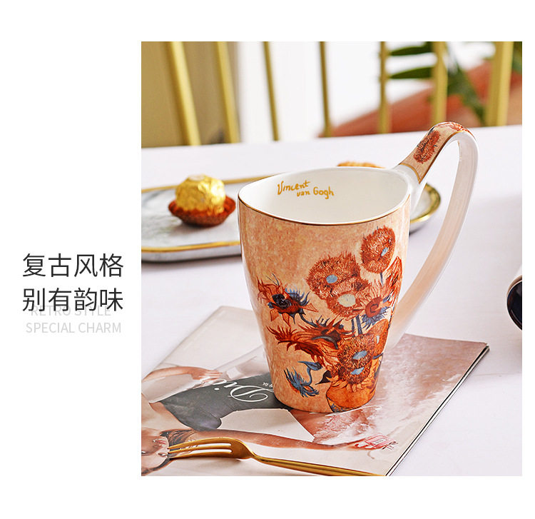 梵高油畫骨瓷大容量馬克杯創意個性潮流文藝杯子家用陶瓷杯禮盒裝