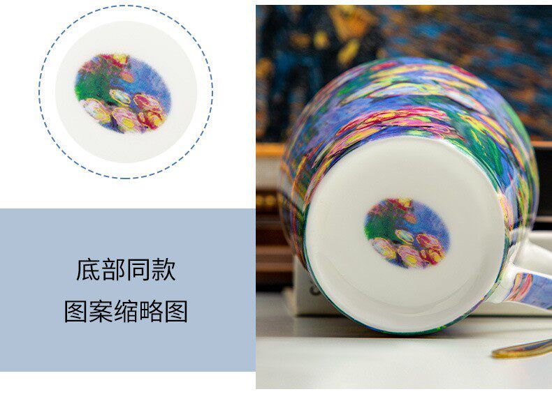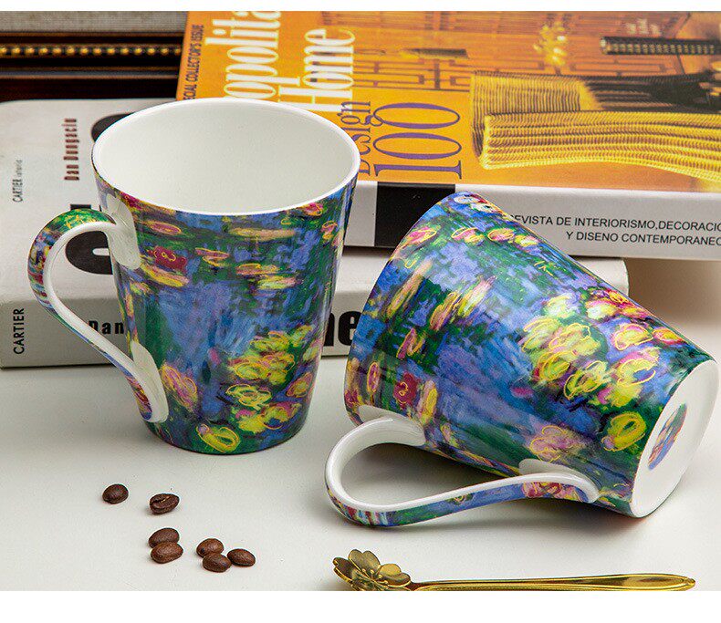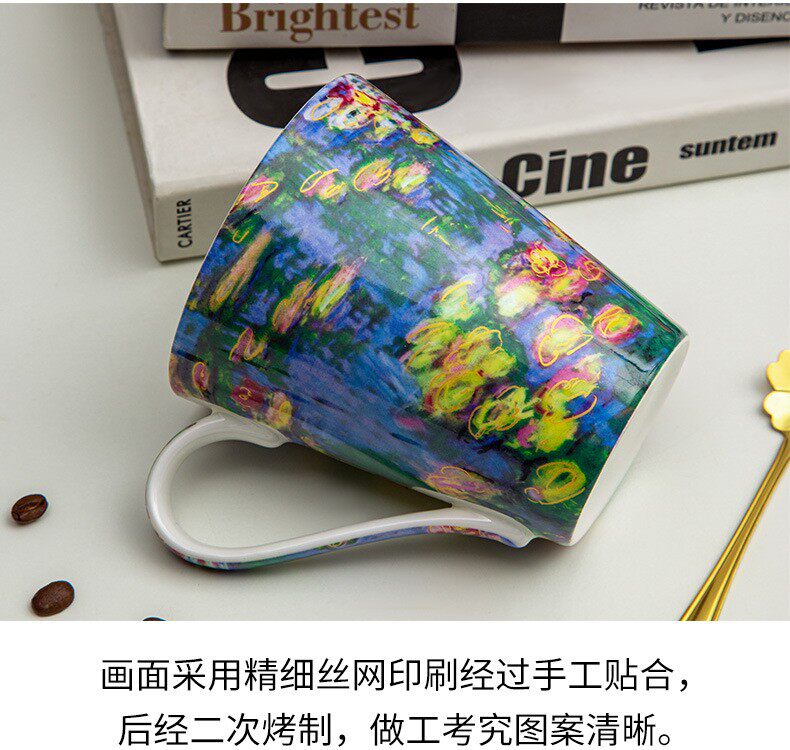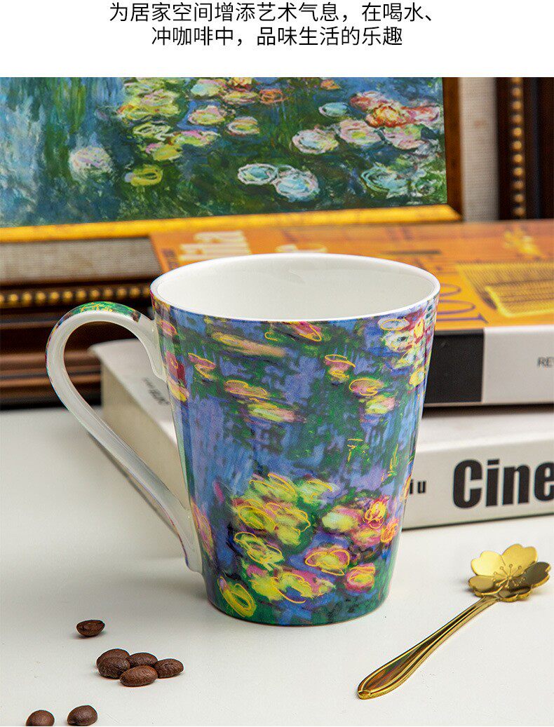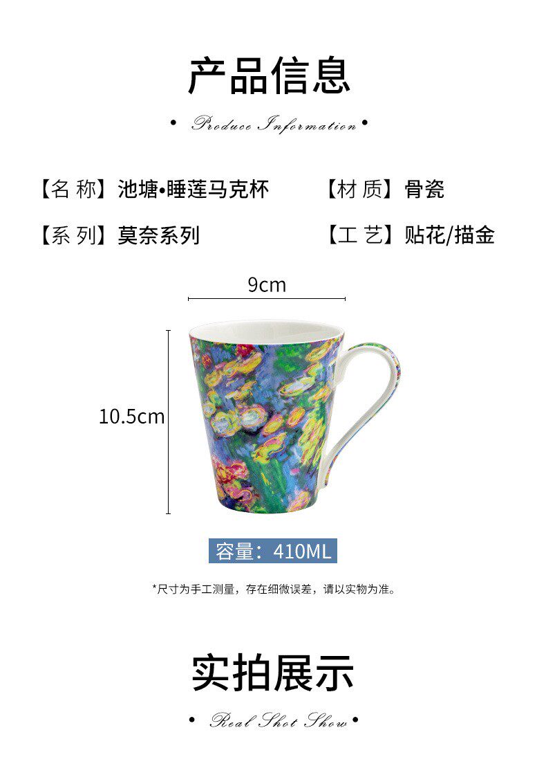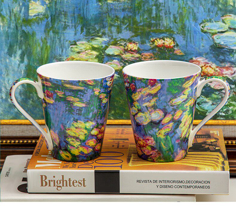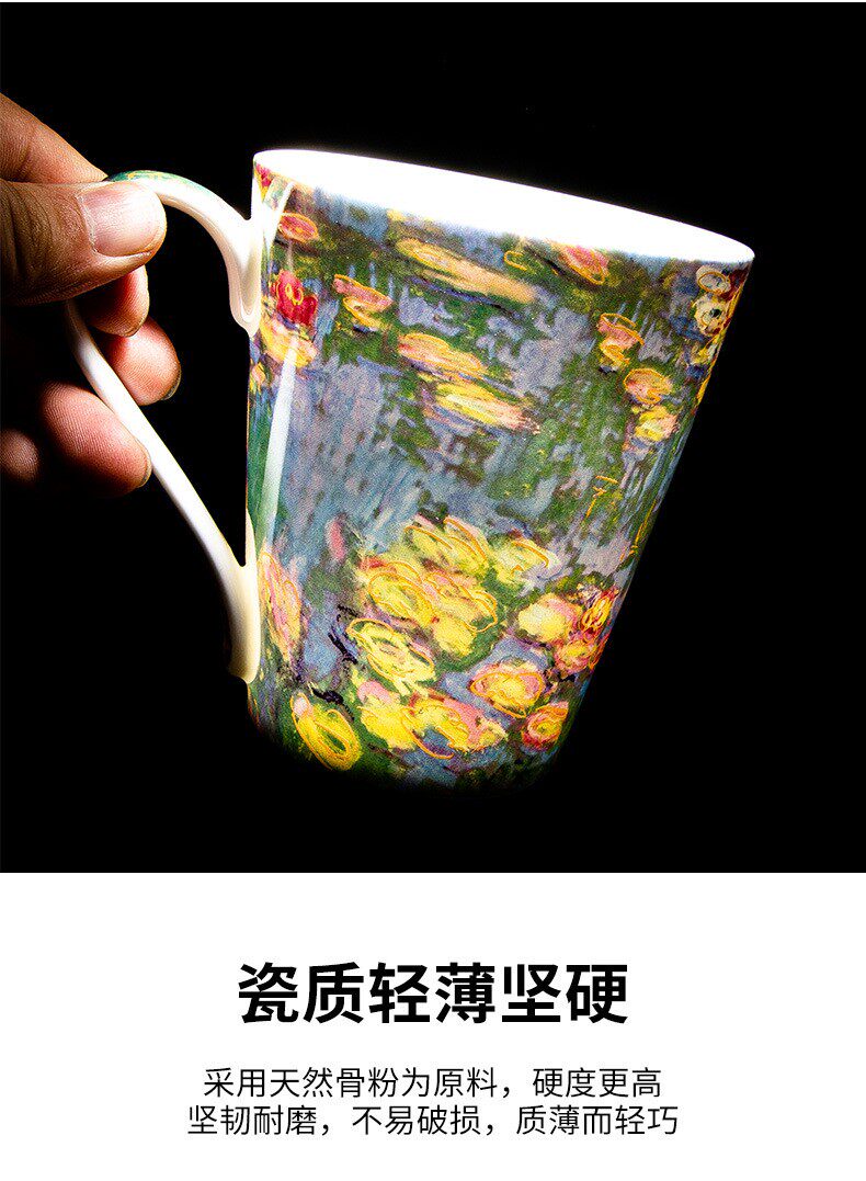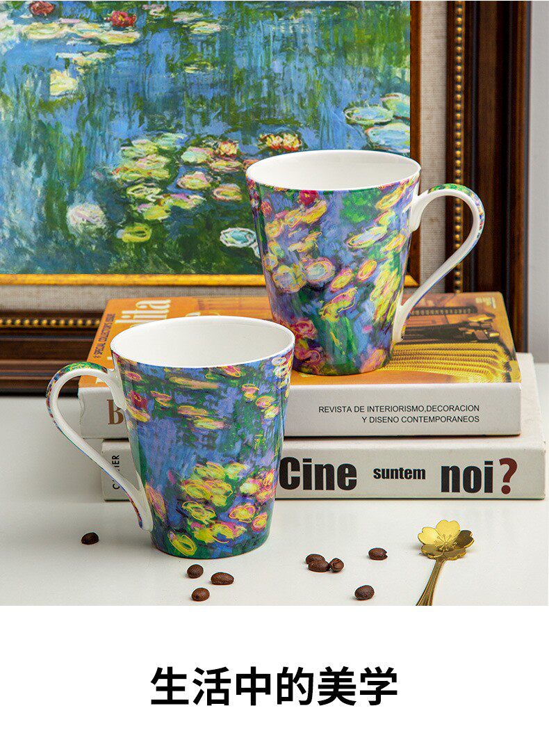 莫奈-睡蓮荷花骨瓷馬克杯陶瓷杯子創意油畫咖啡杯對杯禮物送禮