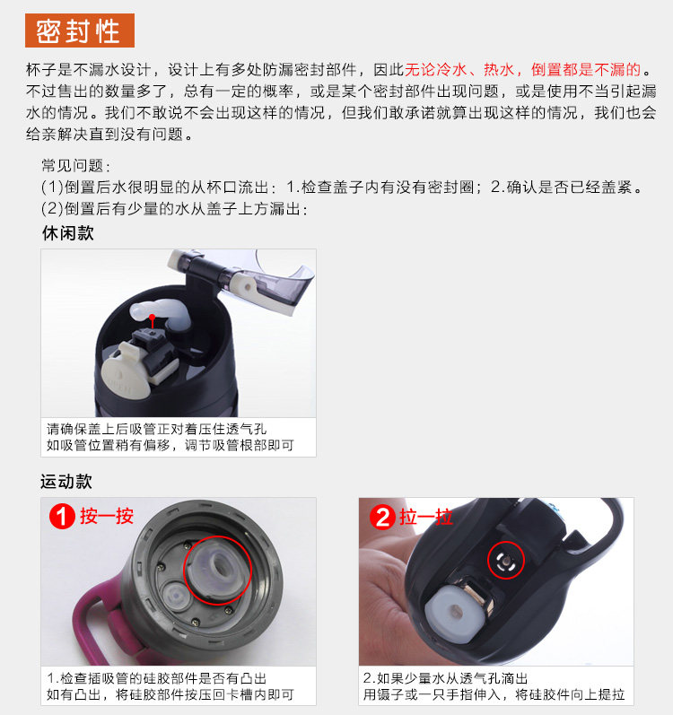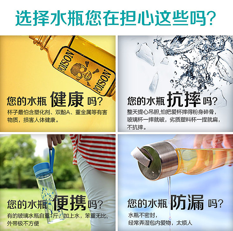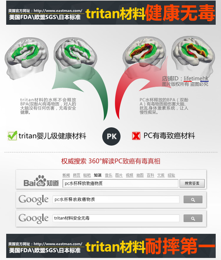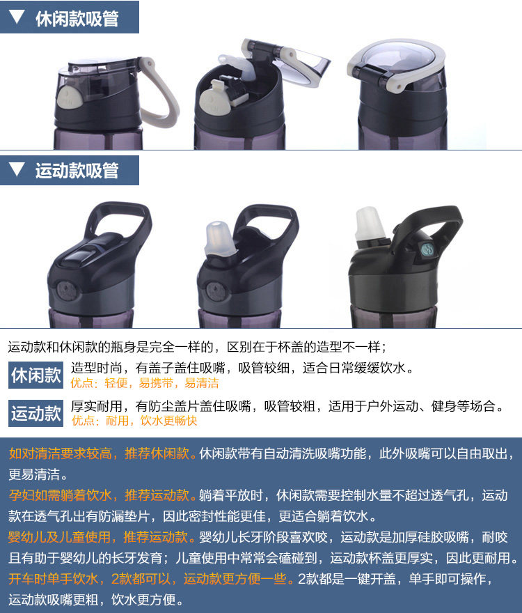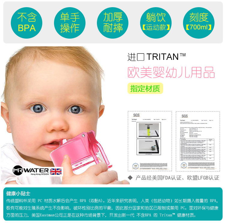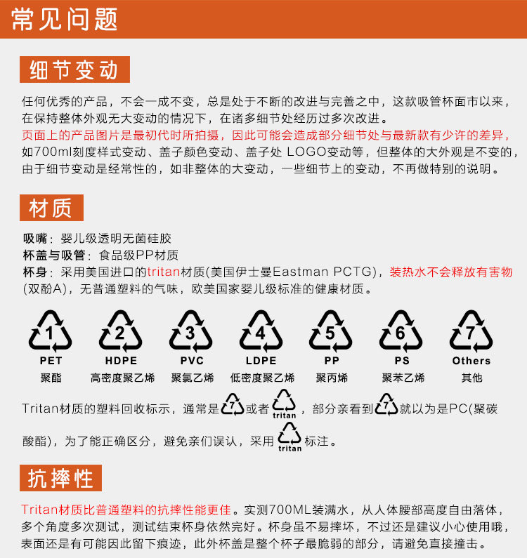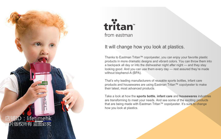 關于材料:本產品采用美國進口Eastman(伊士曼)公司生產的 Tritan™(共聚聚酯)材料,這是一項技術性的突破,材料堅韌耐磨,不脫色,光澤度好,耐高溫,即使超過自身可忍受溫度產生變形也不會釋放BPA等任何有害成分!現在已經成為高端品牌合作的材料,包括Thermos、KOR water、Camelbak、klean canteen等都在使用這款材料哦!