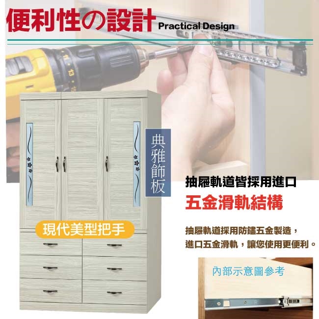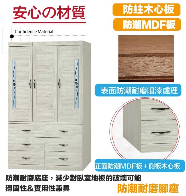採用防蛀木心板+防潮耐磨底座+五金滑軌結構+防夾手緩衝門片五金等安心材質製造