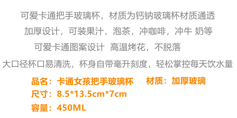 杯子容量滿杯450毫升左右,刻度標注到400毫升。刻度人工貼制而成多少都會有一些誤差哦!