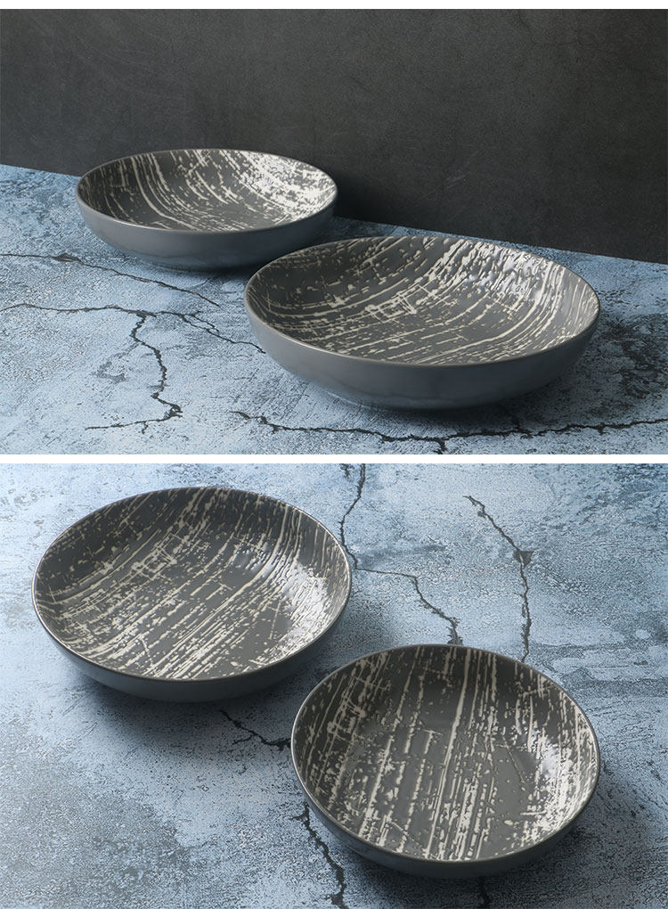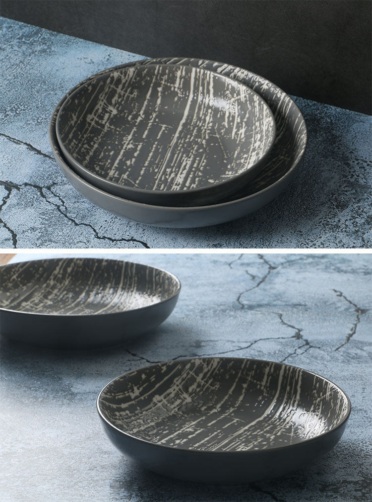 【瓷器有話說】:產品為LZ正品尾單,污泥系列,瓷器設計采用的是印花浮雕風格工藝,白色地方為原瓷坯體,灰色部分也啞亮光灰色色釉,瓷器底部有磨標。產品款式為沙拉盤或者是菜盤。家用的尺寸是非常合適的一款瓷器。
