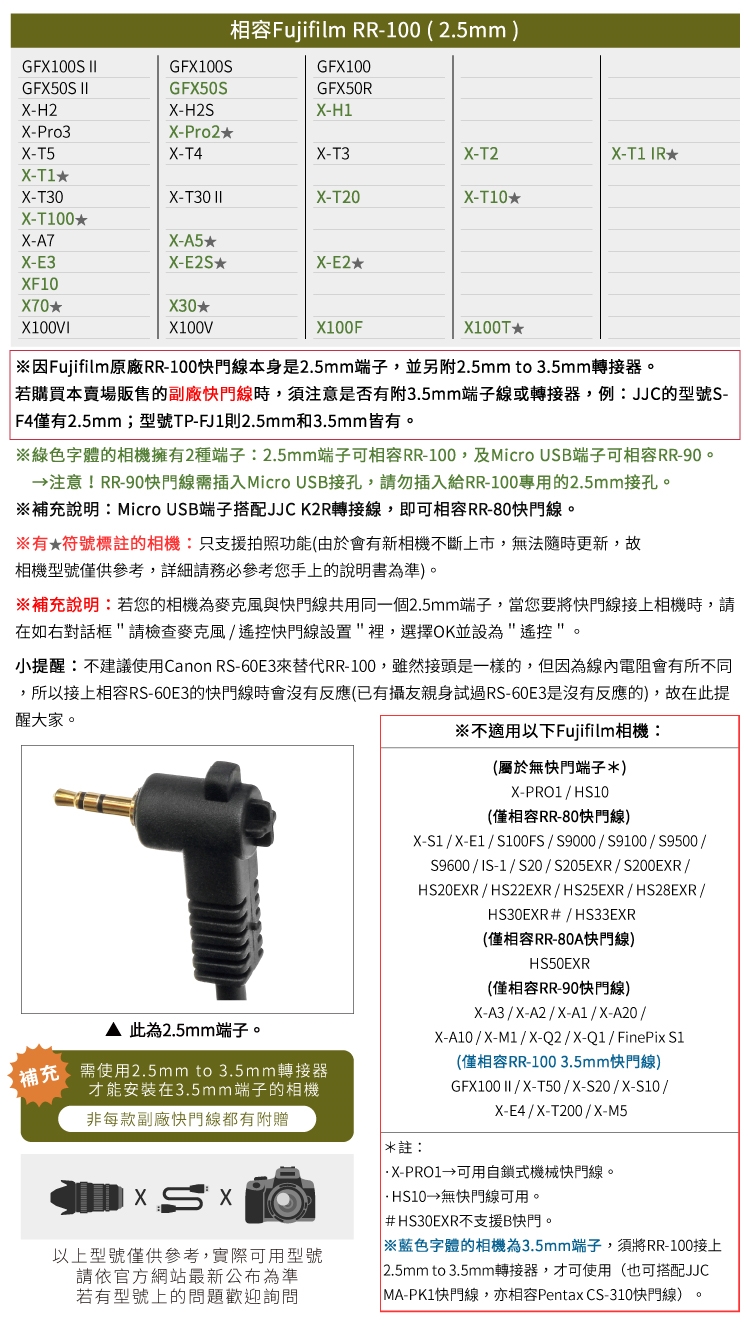 (相容Fujifilm富士RR-100 2.5mm端子)