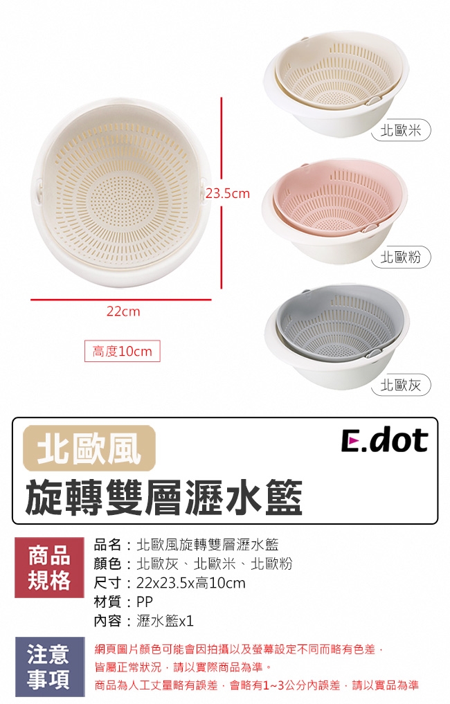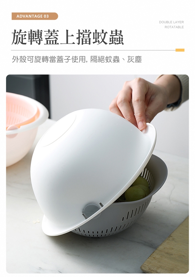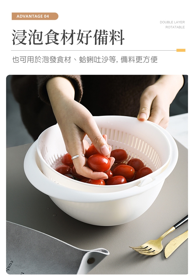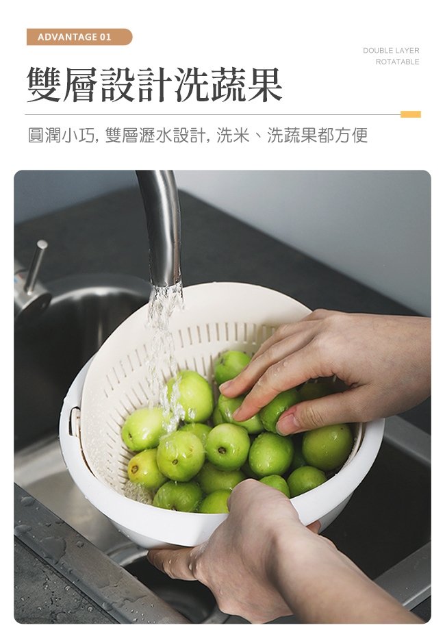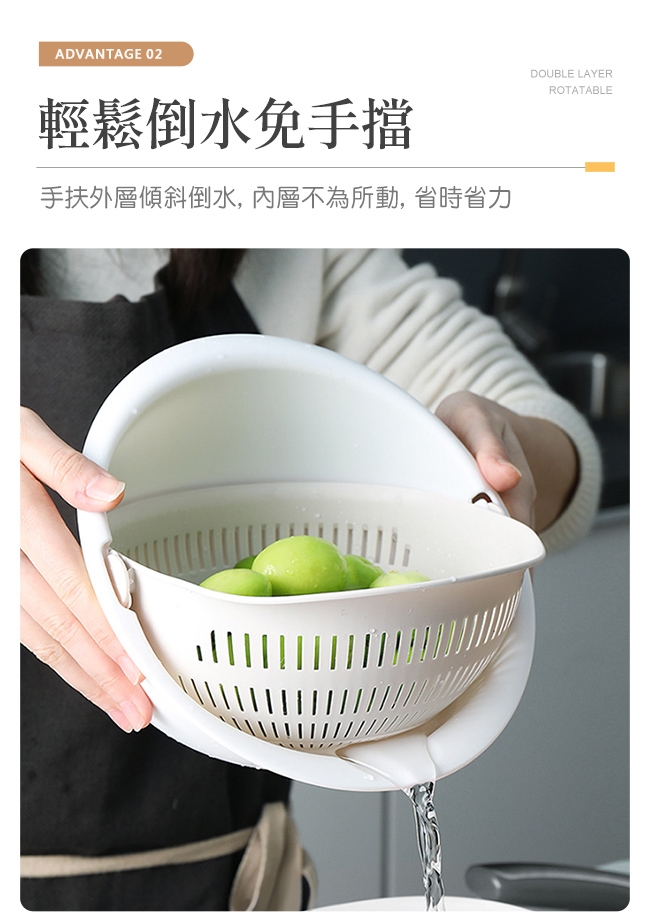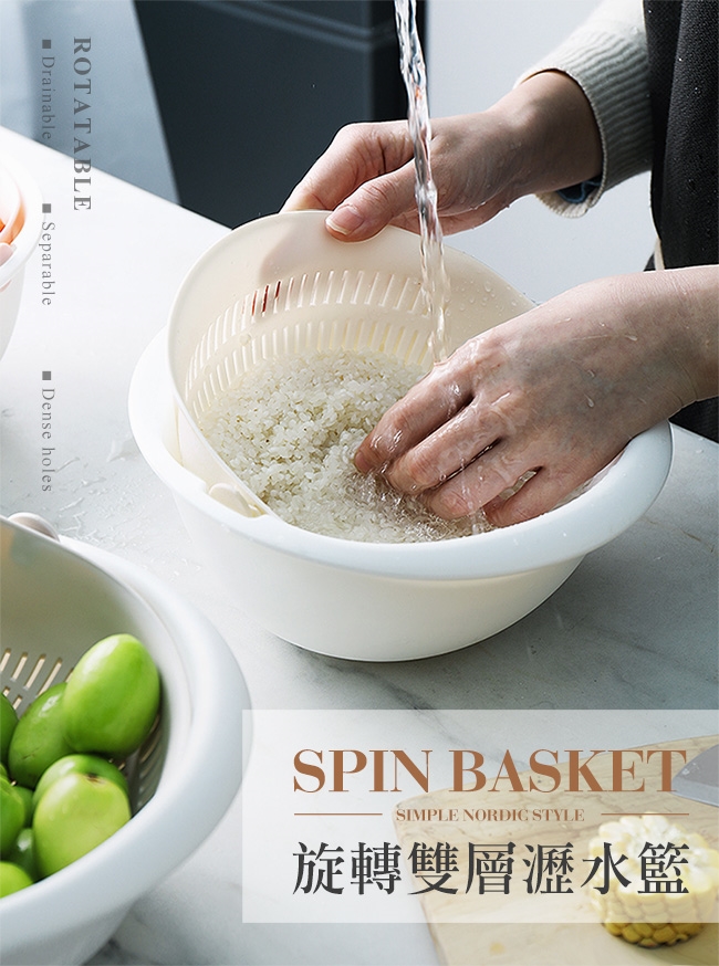 ◆ 商品名稱:北歐風旋轉雙層瀝水籃