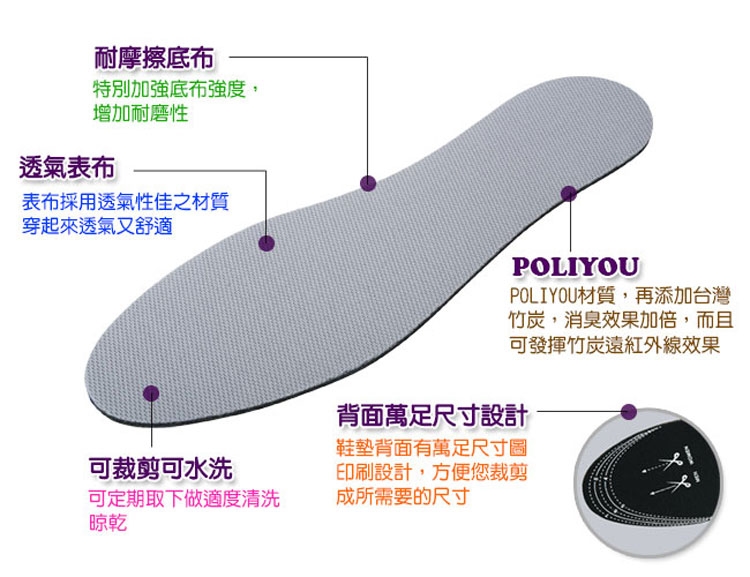 3、為確保鞋墊之乾淨、衛生,請定期清洗或定期更換。