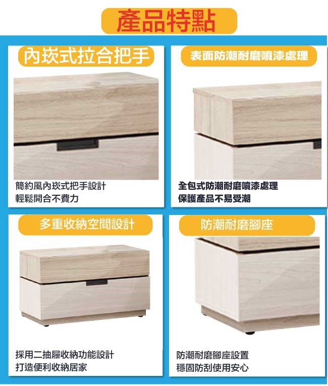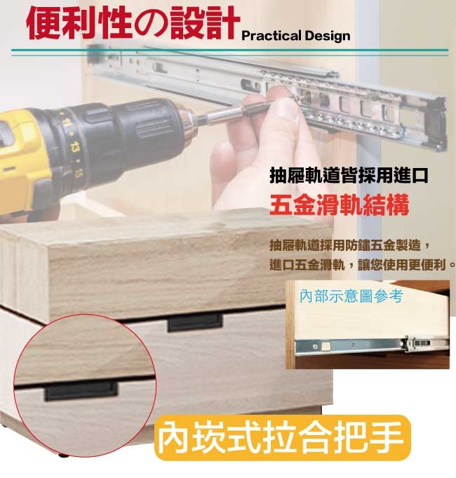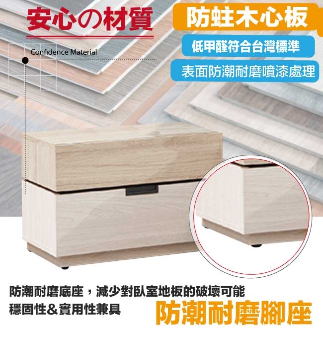 防蛀木心板+五金滑軌結構+防潮耐磨腳座等材質