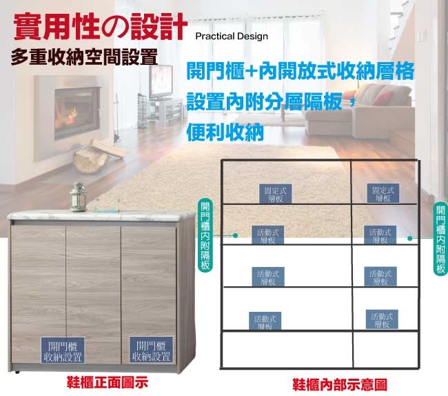 【文創集】路思樂4尺三門雙色鞋櫃(仿雲紋石紋木質桌面板) 橡木紋雙色系+現代簡約風格+安心材質製造,使用放心+搭配居家更便利,整體採用防蛀木心板+防潮耐磨腳座+仿雲紋石紋木質桌面板(防潮MDF纖維板)+防夾手緩衝門片五金等材質搭配外層採用優莉坦耐磨全包式噴漆處理 ,採用開門櫃+內開放層格等收納空間設計,全由專人配送到家,專業安心服務,替你省下更多時間!
