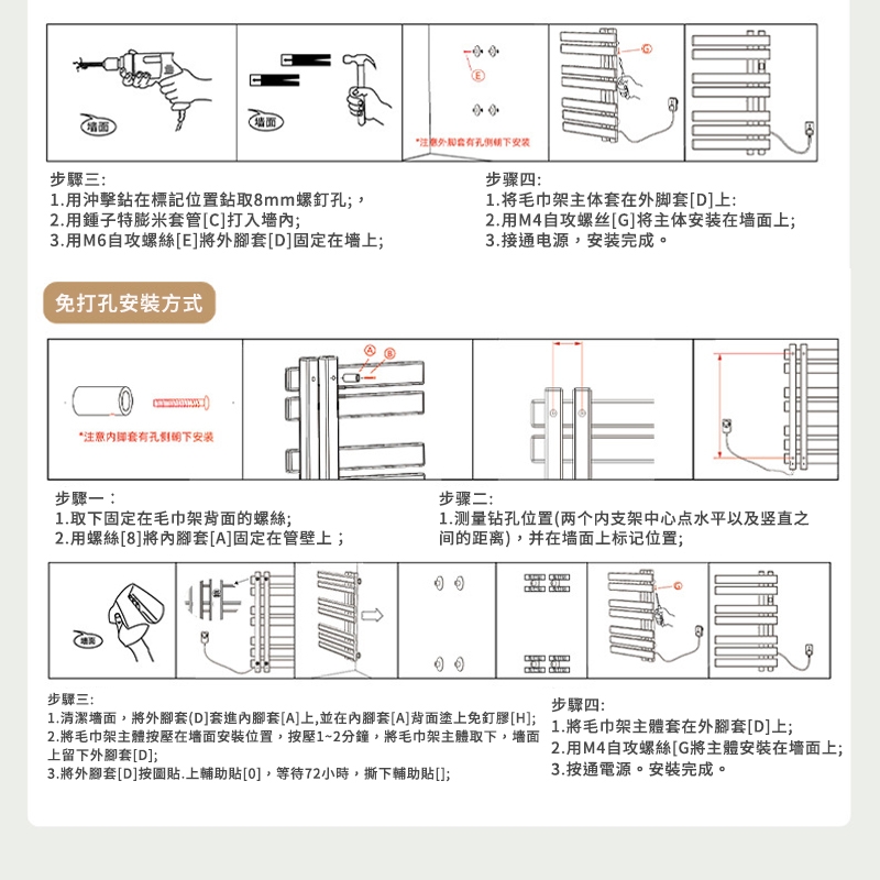 ●加寬加熱桿,接觸面積大,毛巾烘幹快速,省時省電