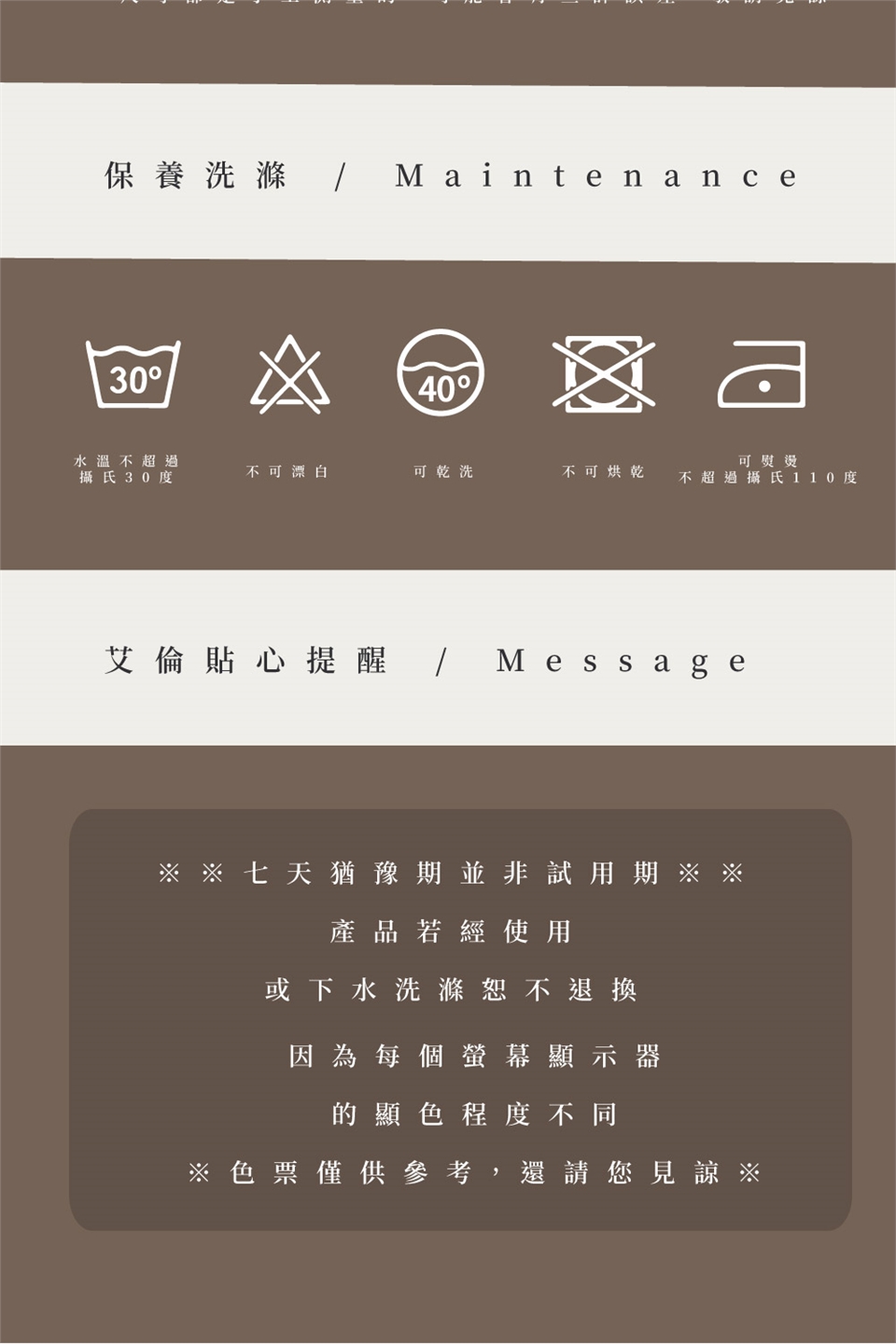*小編提醒,7天鑑賞期並非7天使用期,因本商品屬高單價寢具,收到商品後請確認尺寸及商品狀況無誤後再下水清洗或使用,下水過後或使用過後的商品,一律恕不退換。