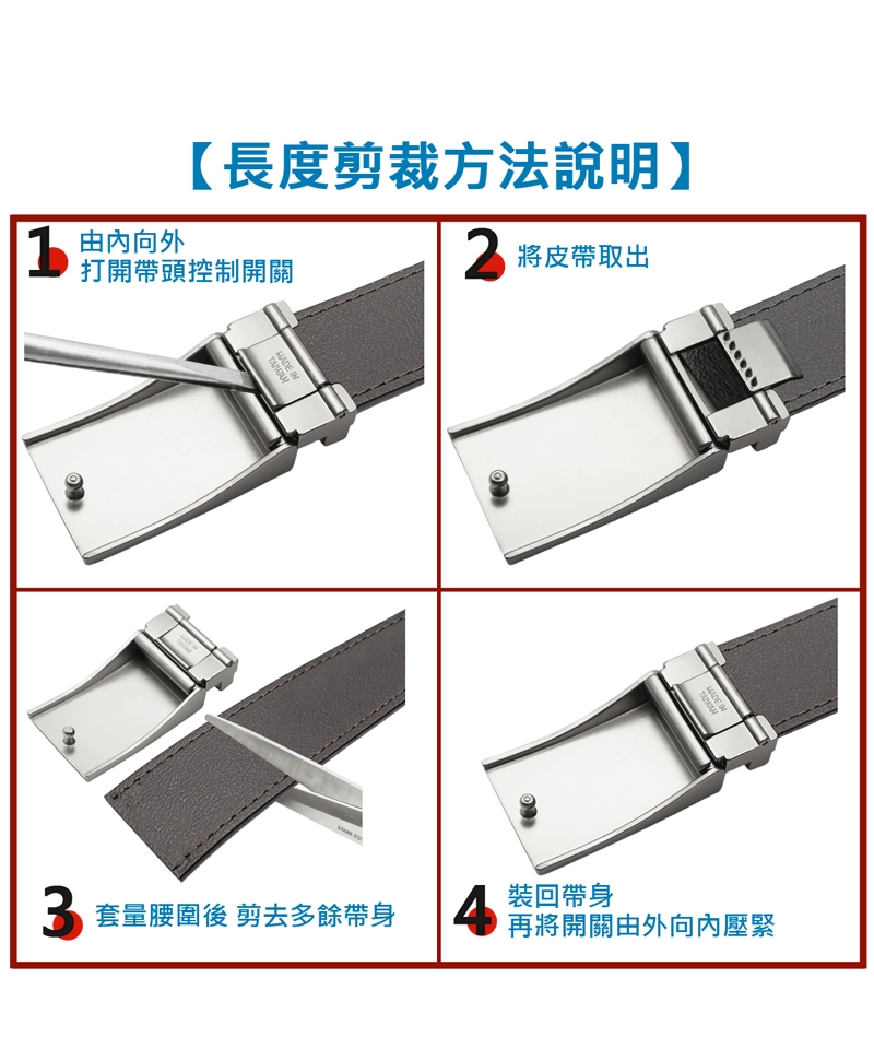 可搭配活動式帶身,方便自行剪裁皮帶尺寸~