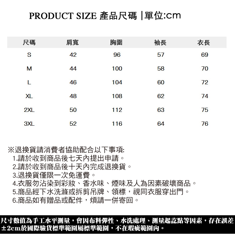 4.衣服勿沾染到彩妝、香水味、煙味及人為因素破壞商品。