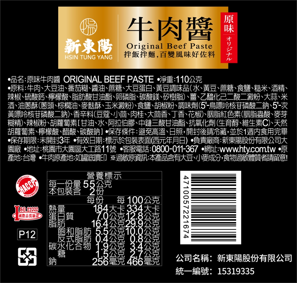 ◆ 品 名:新東陽原味牛肉醬110G*3入