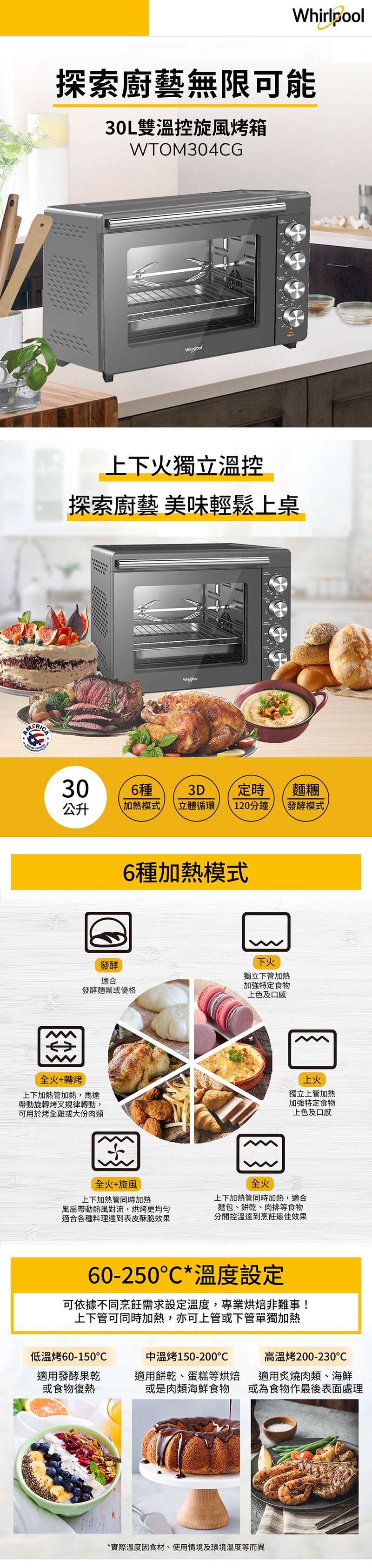 ◆60-250°C溫度設定,上下火可獨立加熱,在家也能做專業烘焙。