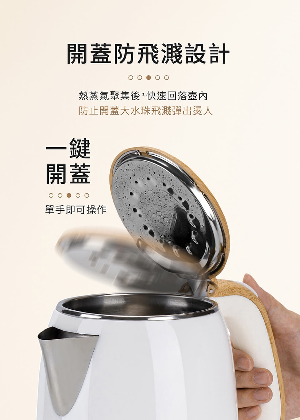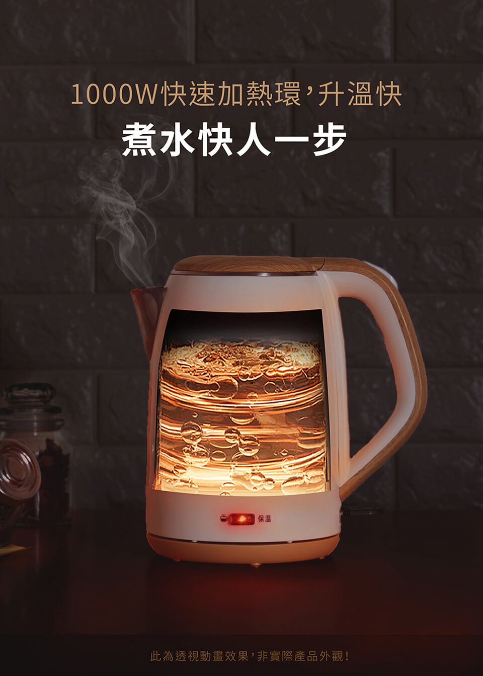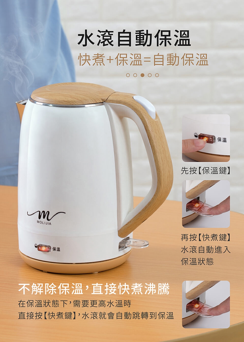 產品名稱:福利品-【MOLIJIA 魔力家】M27雙層防燙快煮壺1.9公升/保溫型/木紋款
