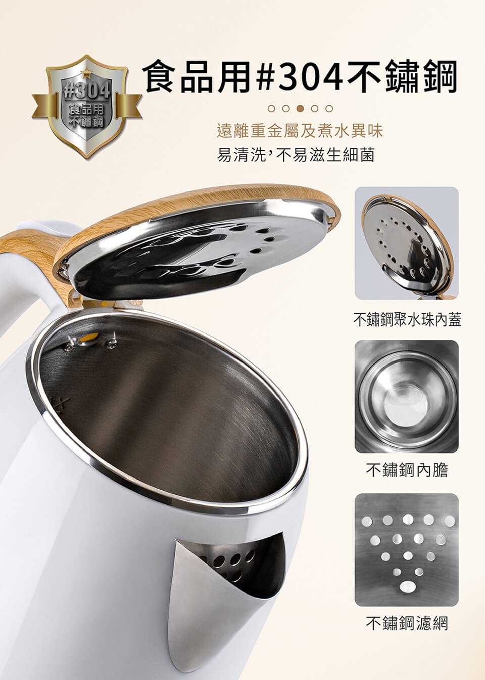 內容物:304不鏽鋼壺X1 + 分離式底座X1 + 說明書X1