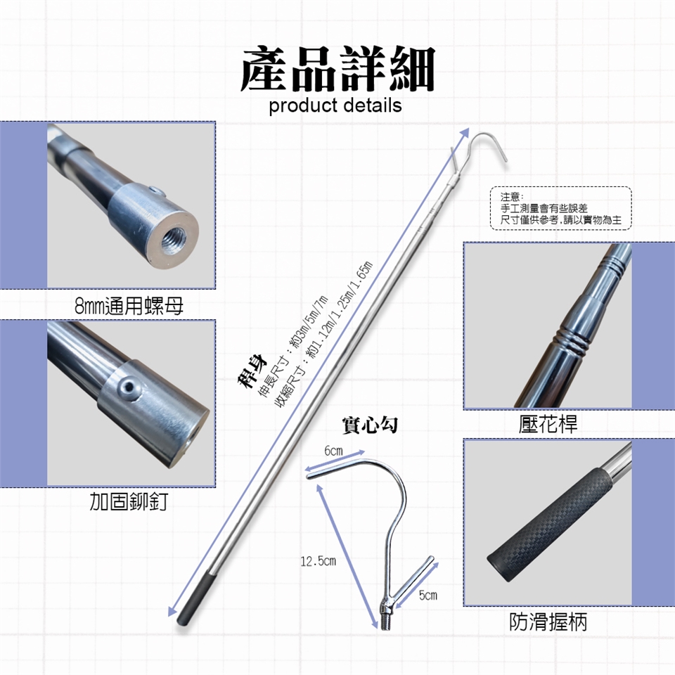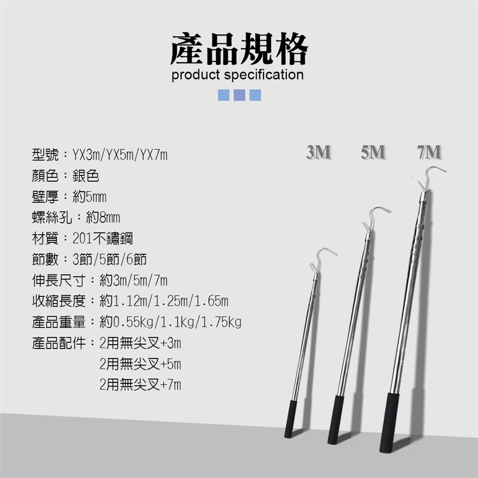 ■ 產品配件:2用無尖鈎叉+3m/2用無尖鈎叉+5m/2用無尖鈎叉+7m