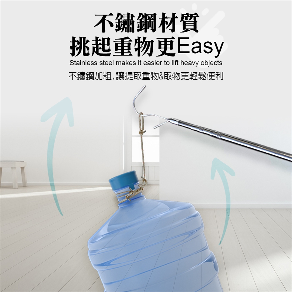 ■ 品名:EZmakeit 不鏽鋼伸縮桿 伸縮取物桿 實心勾 叉 竹竿 曬衣 取衣
