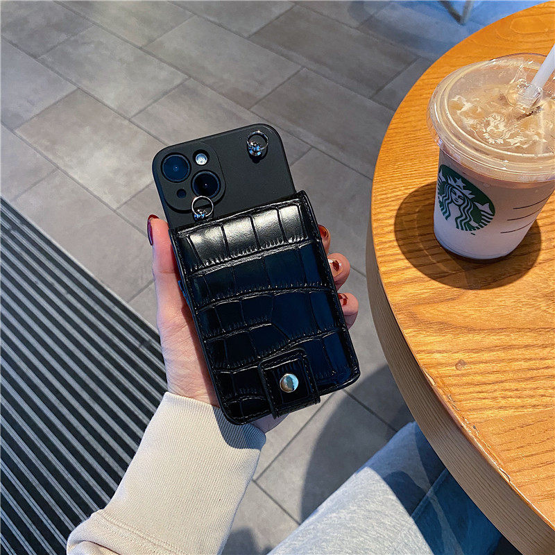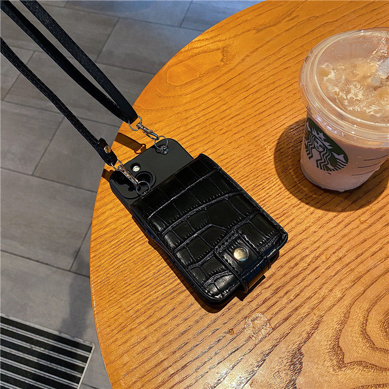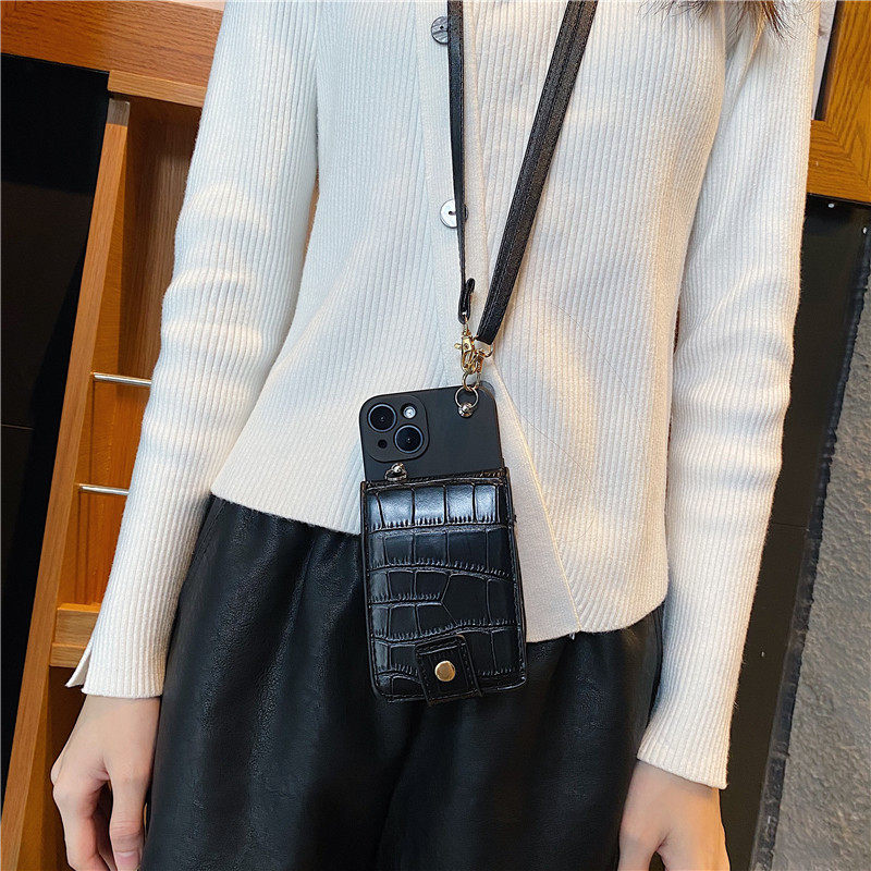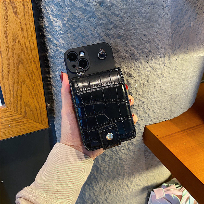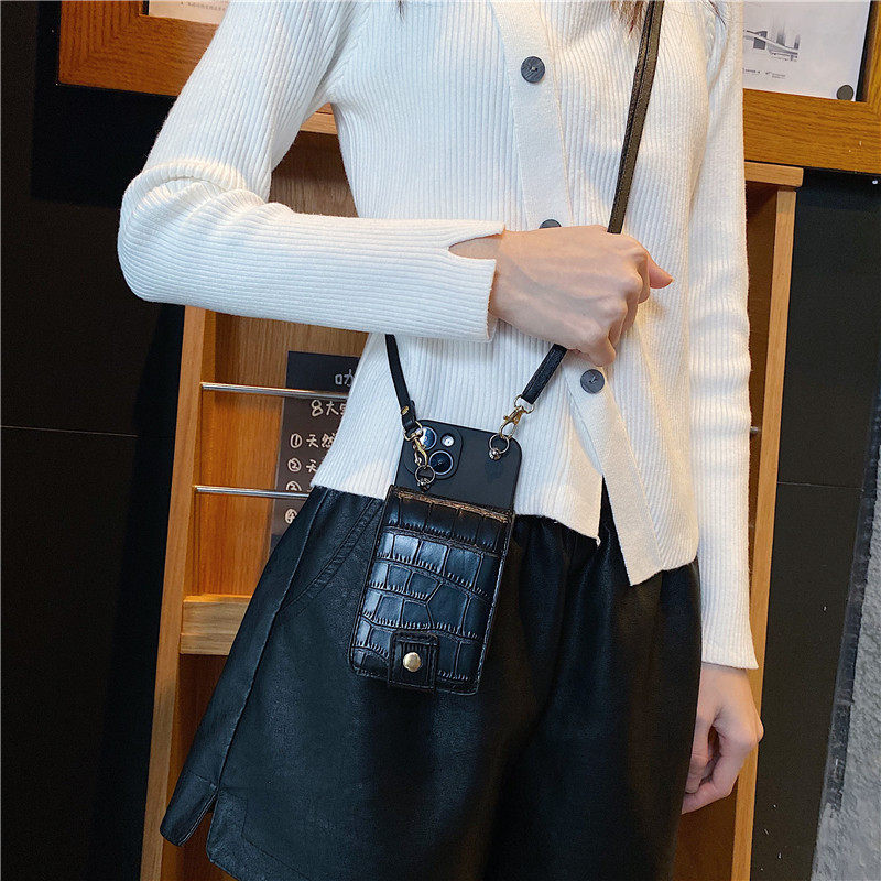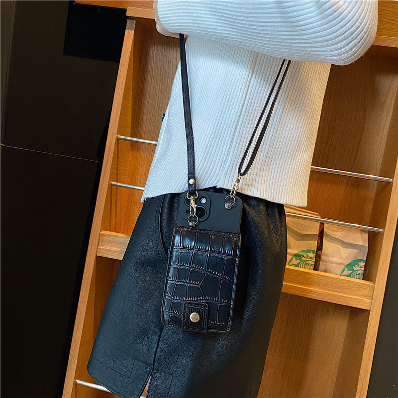 歐美潮牌鱷魚紋鏡子零錢包斜挎背帶手機殼