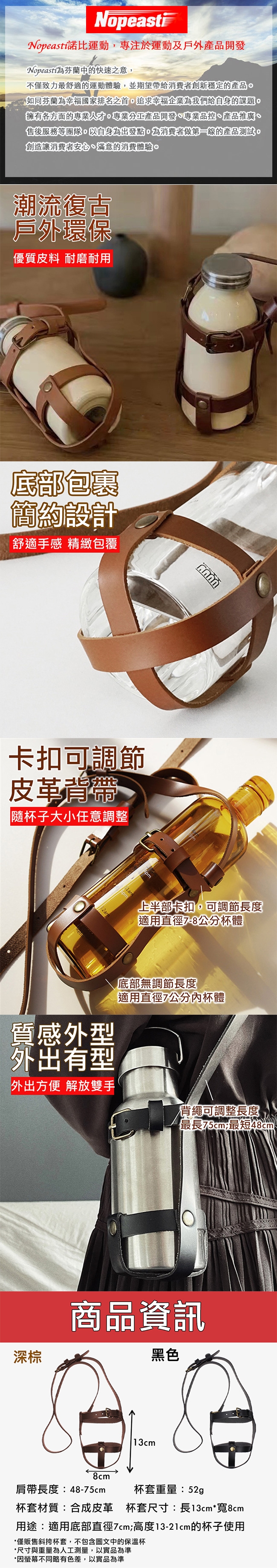 ◆ 皮革背帶,卡扣可調節,隨杯子大小任意調整