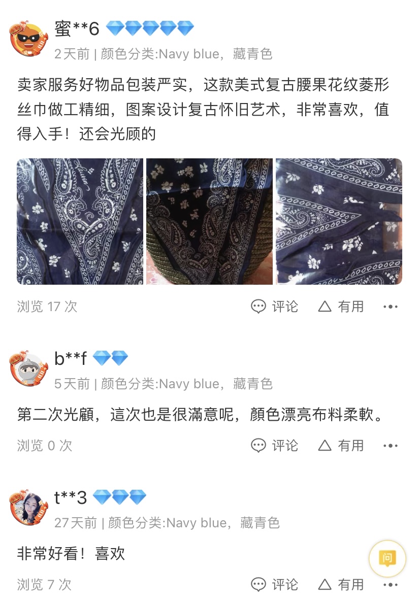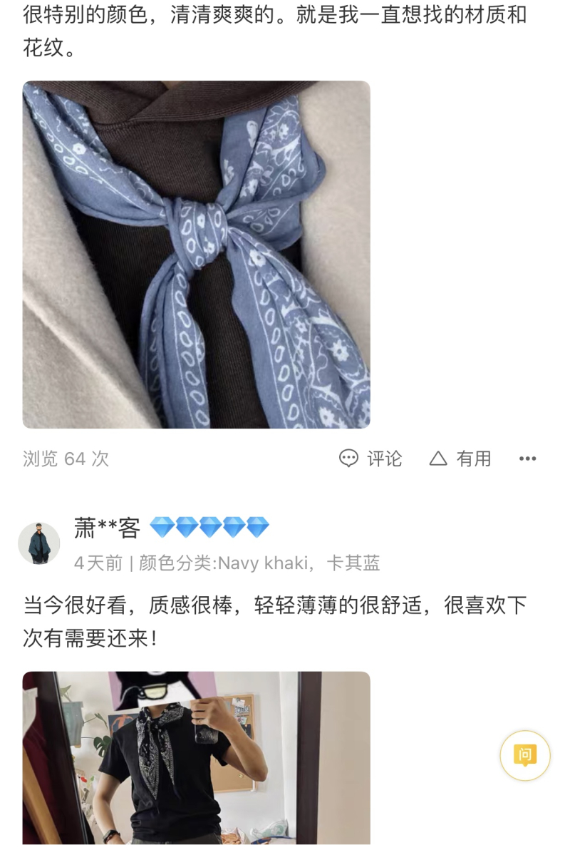 高支薄棉印花菱形巾(縱向對疊則是雙層三角巾)