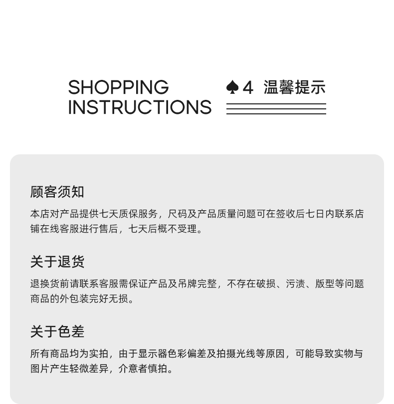 因商品為海外寄送,若拒收包裹,包裹將會退回海關並被銷毀,且訂單款項不會退款。請務必在下單前確認收件地址及商品內容無誤。 - 非瑕疵商品退貨手續費