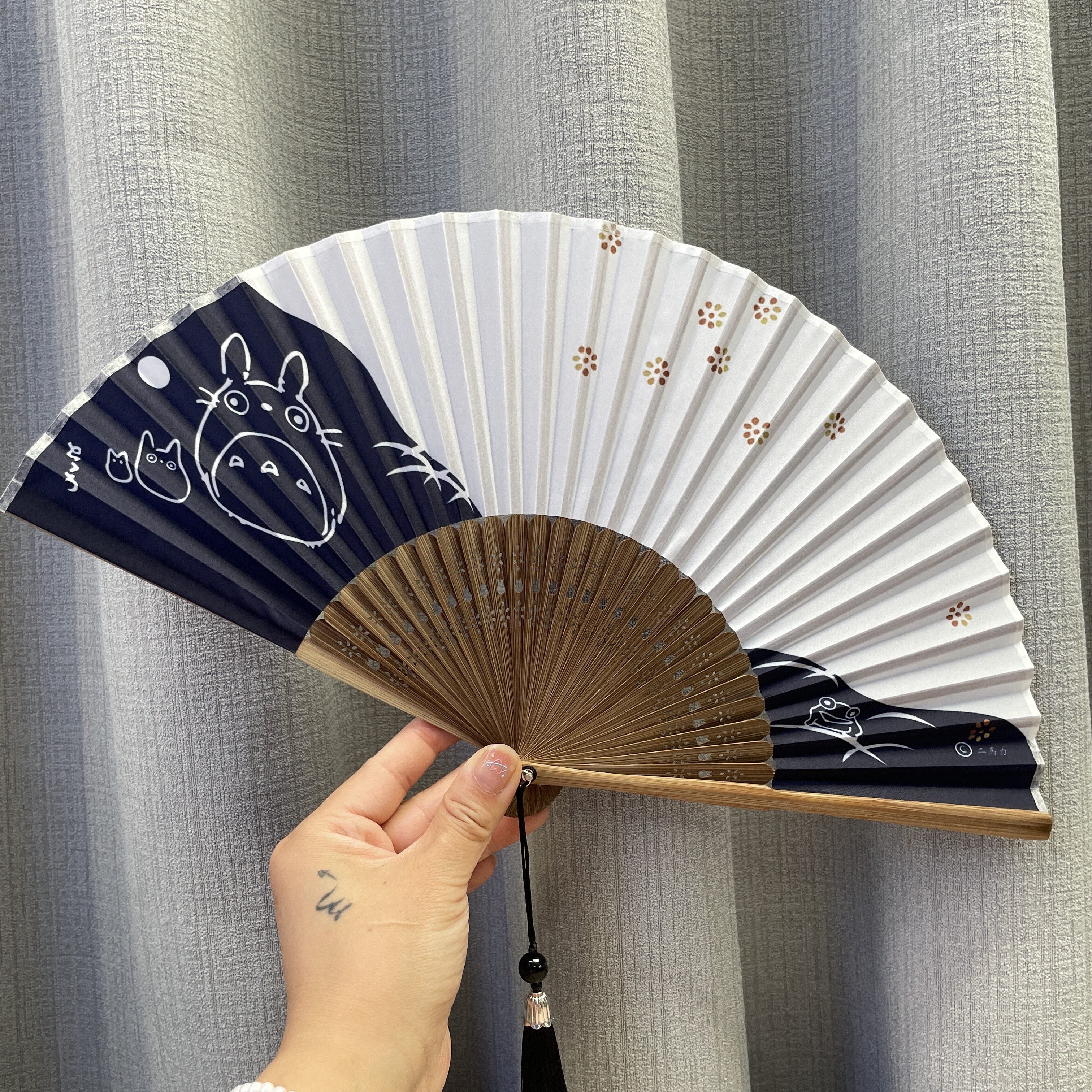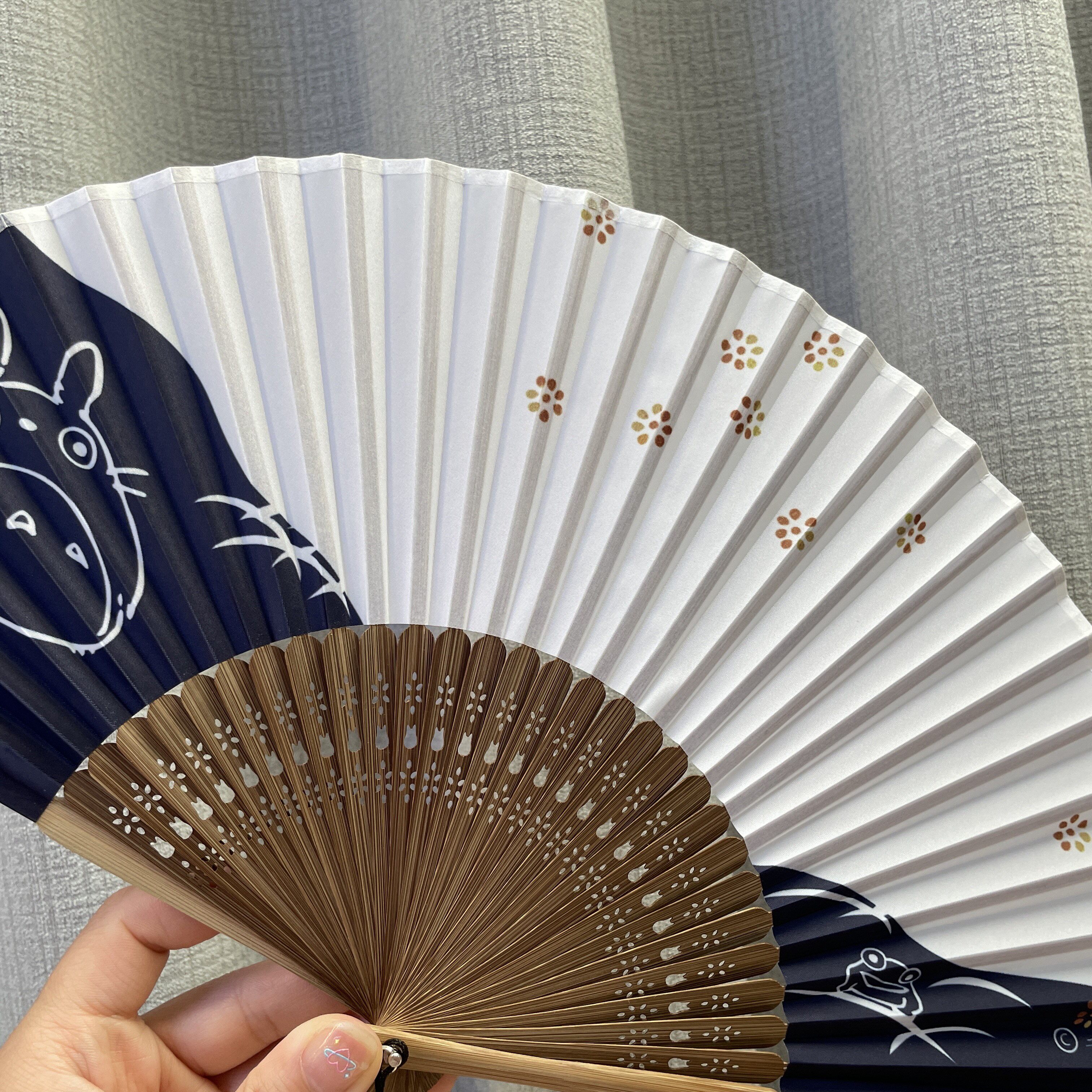 扇面為化纖彩印,龍貓系列,扇面略硬,風量適中。