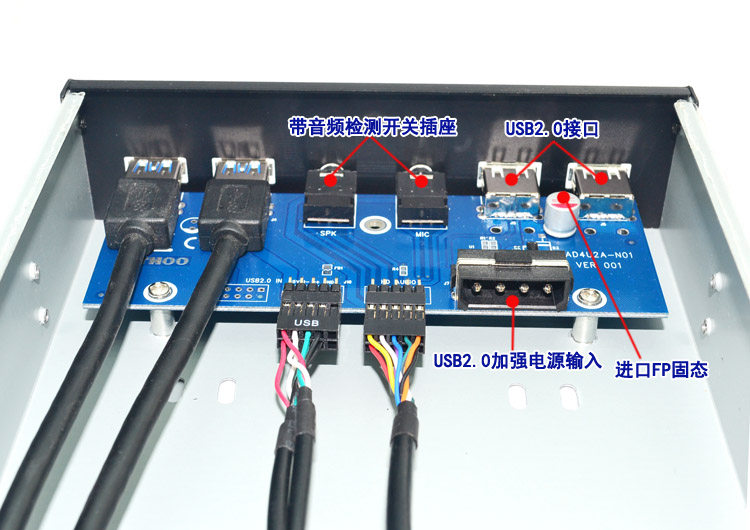 因現在USB設備越來越多,機箱上的USB口不夠用時!您可以使用此設備直接將板子上的19PIN接口、9PIN接口和音頻轉換成2個USB3.0接口+2個USB2.0和耳機輸出和麥克風接口,安裝在閑置的光驅位置.這樣就提供了前置的USB接口和音頻接口,再也不用彎腰去插線了,非常方便!