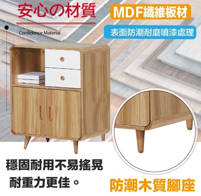 【文創集】吉爾斯2.3尺二門二抽展示櫃/邊櫃(二色可選) 二色可選+現代簡約風格+安心材質製造,使用放心+搭配居家更便利,整體採用防潮MDF板+防潮木質腳座+五金滑軌結構等材質製造搭配外層採用防潮耐磨&亮面噴漆處理 ,採用開門櫃+二抽屜+開放式空間等收納空間設計,全由專人配送到家,專業安心服務,替你省下更多時間!
