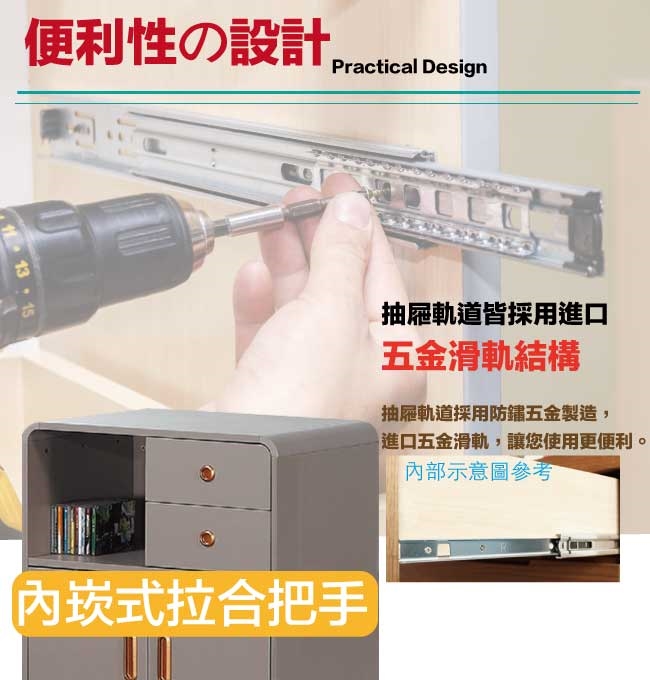 防潮MDF板+防潮木質腳座+五金滑軌結構等材質製造