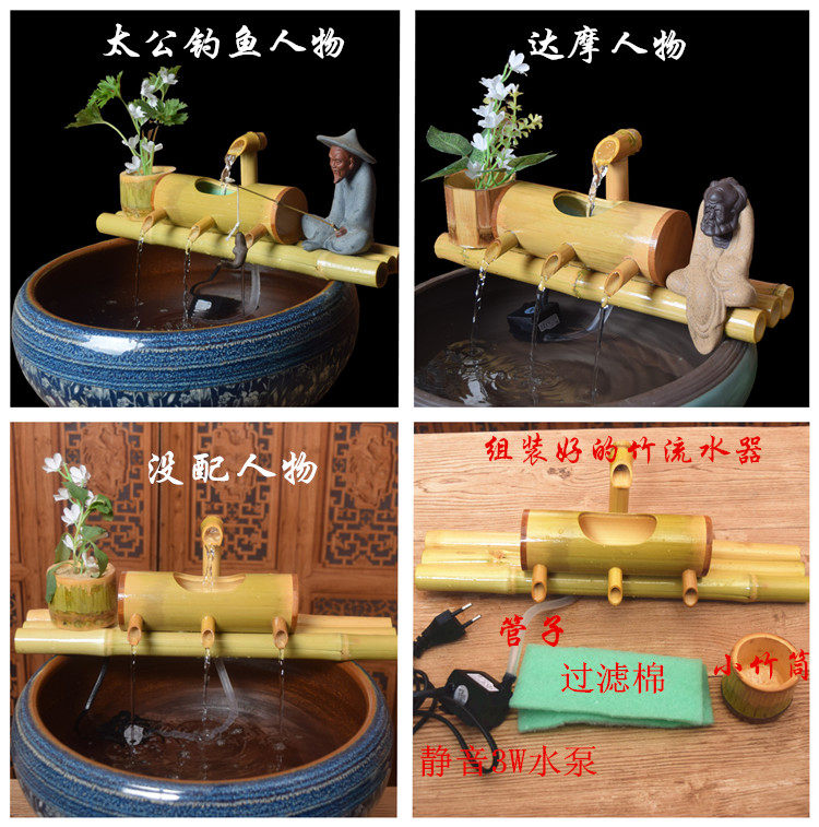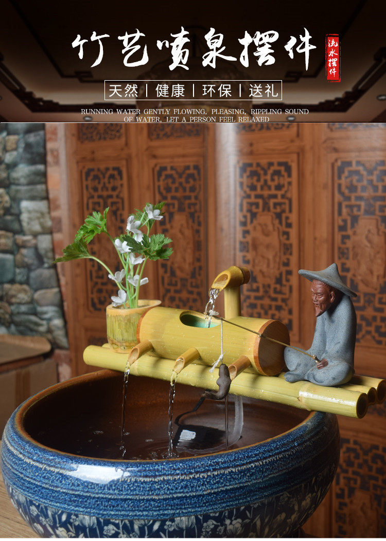 竹子流水竹筒流水器魚缸石槽魚池裝飾陶瓷造景擺件過濾器養魚制氧
