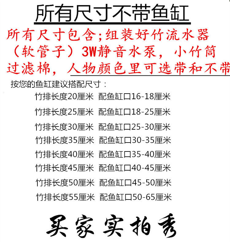 魚缸竹流水器,所有尺寸都不帶魚缸