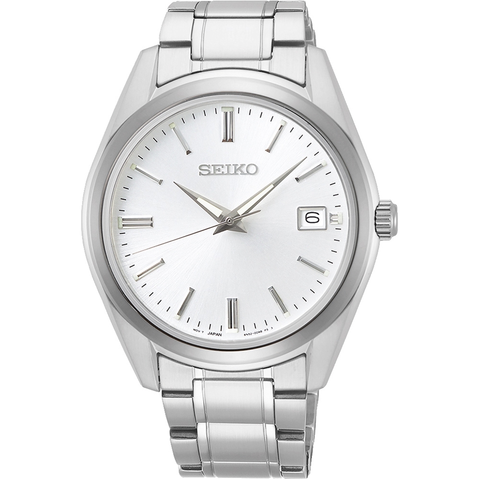 日期視窗顯示,搭配不鏽鋼材質錶帶
