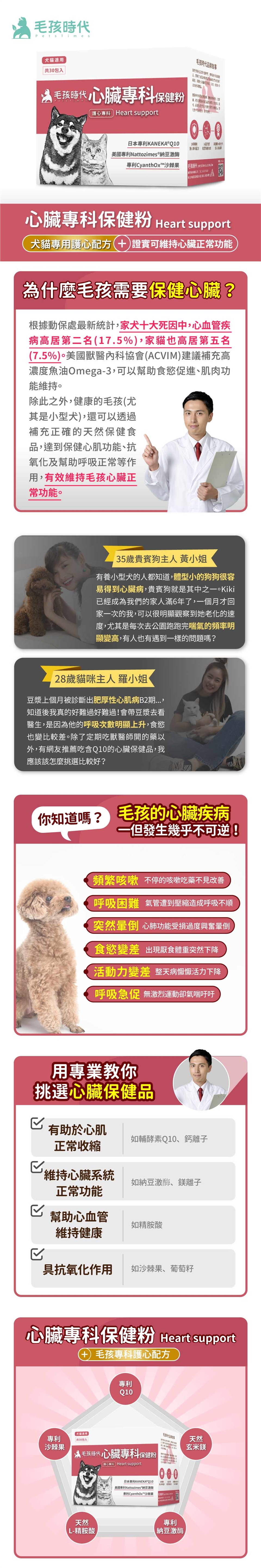 因為心臟專科保健粉成份是天然萃取,從幼年開始,可以就毛孩可能會遇到的問題開始保養心臟,透過心臟專科保健粉維持心臟健康。