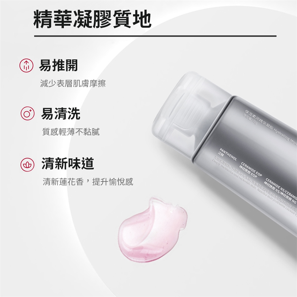 4D多重補水保濕,舒緩亮澤一步到位專利保濕原料,升級搭配多種複合成分