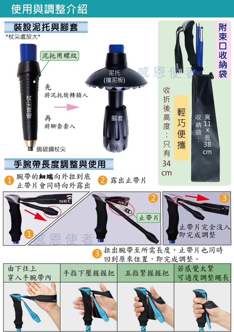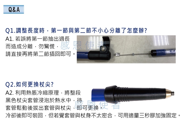 6. 杖尖、腳套、泥托與鎖扣為消耗品,若有耗損或異常,建議及時購買新品更換使用。
