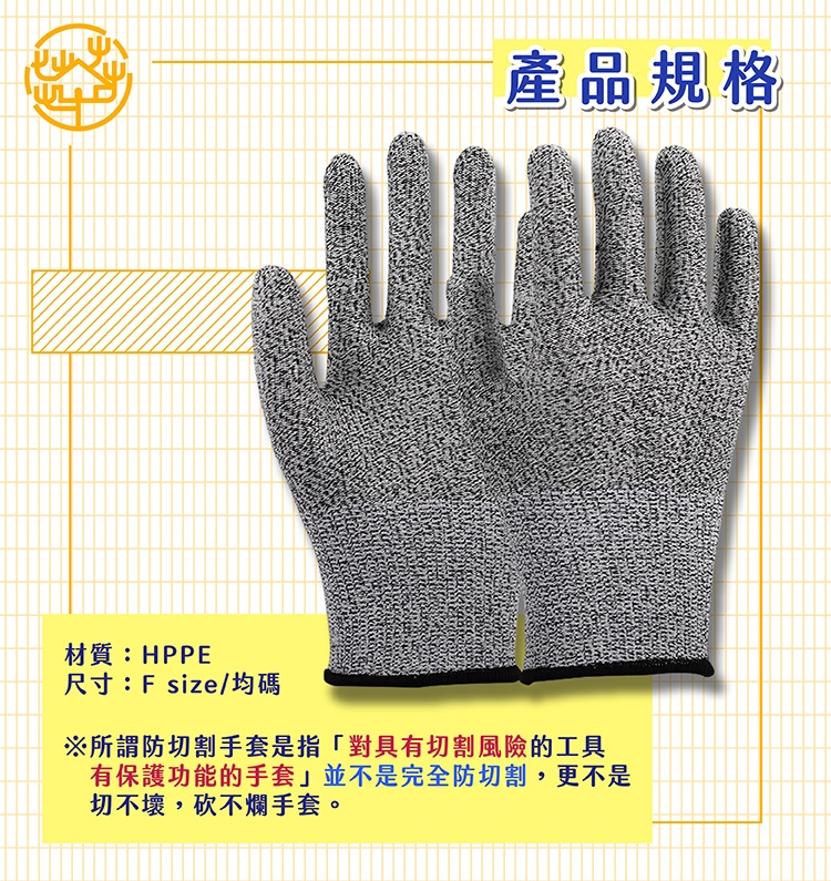 ※所謂防切割手套是指「對具有切割風險的工具有保護功能的手套」並不是完全防切割,更不是切不壞、砍不爛手套。