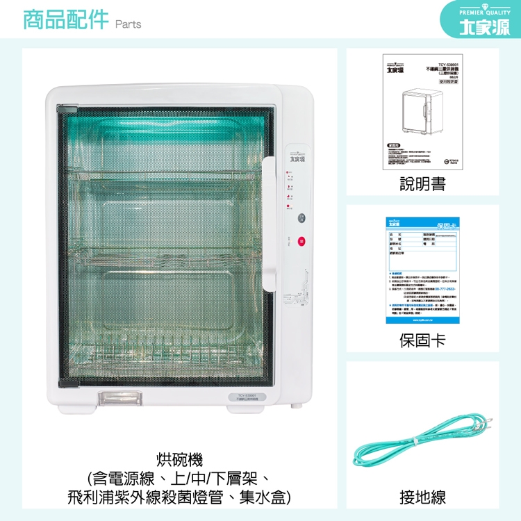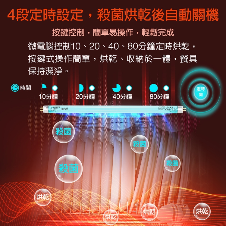 主 商 品:烘碗機(含電源線、上/中/下層架、飛利浦紫外線殺菌燈管、集水盒)