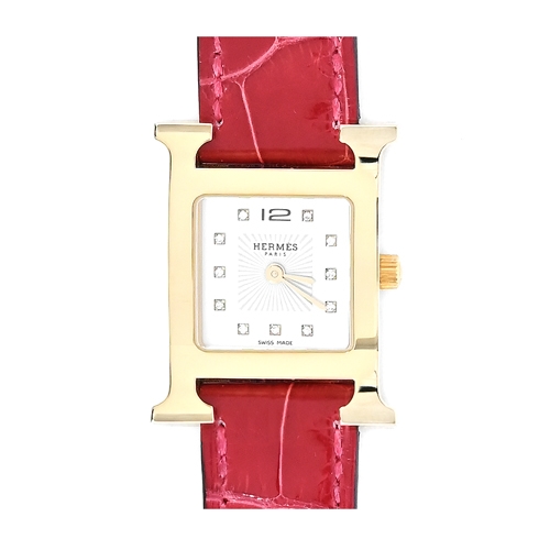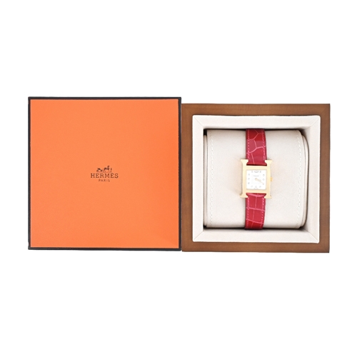 Hermes 愛馬仕 Heure H 鱷魚皮革女仕腕錶(紅/25mm)